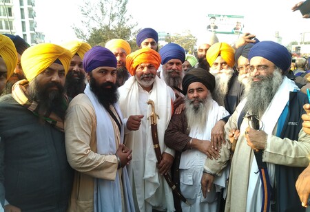 ਕਿਸਾਨ ਆਗੂ ਰਾਕੇਸ਼ ਟਿਕੈਤ ਨੂੰ ਸਨਮਾਨਿਤ ਕਰਦੇ ਹੋਏ ਗਿਆਨੀ ਜੀਵਾ ਸਿੰਘ, ਐਡਵੋਕੇਟ ਭਗਵੰਤ ਸਿੰਘ ਸਿਆਲਕਾ, ਭਾਈ ਅਜੈਬ ਸਿੰਘ ਅਭਿਆਸੀ ਤੇ ਹੋਰ।