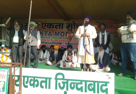 ਸਟੇਜ ਤੋਂ ਭਾਰੀ ਇਕੱਠ ਨੂੰ ਸੰਬੋਧਨ ਕਰਦਿਆਂ ਦਮਦਮੀ ਟਕਸਾਲ ਦੇ ਆਗੂ ਗਿਆਨੀ ਜੀਵਾ ਸਿੰਘ ਨੇ ਕਿਹਾ ਕਿ ਇਸ ਜਥੇ ਦਾ ਮੋਰਚੇ ’ਚ ਹਿੱਸਾ ਲੈਣ ਦਾ ਮਕਸਦ ਕਿਸਾਨਾਂ ਨਾਲ ਮੋਢੇ ਨਾਲ ਮੋਢਾ ਜੋੜ ਕੇ ਅੰਦੋਲਨ ਨੂੰ ਮਜ਼ਬੂਤੀ ਪ੍ਰਦਾਨ ਕਰਨੀ ਹੈ। ਉਨ੍ਹਾਂ ਕਿਹਾ ਕਿ ਸਿੱਖ ਗੁਰੂ ਸਾਹਿਬਾਨ ਹੱਕ ਸੱਚ ਅਤੇ ਅਧਿਕਾਰਾਂ ਲਈ ਲੜਨ ਲਈ ਪ੍ਰੇਰਦੇ ਰਹੇ ਹਨ। ਉਨ੍ਹਾਂ ਕਿਹਾ ਕਿ ਸਿੱਖ ਪੰਥ ਨੇ ਦੇਸ਼ ਦੀ ਅਜ਼ਾਦੀ ਲਈ ਵੱਡੀਆਂ ਕੁਰਬਾਨੀਆਂ ਕੀਤੀਆਂ ਹਨ। ਉਨ੍ਹਾਂ ਕਿਹਾ ਕਿ ਦਮਦਮੀ ਟਕਸਾਲ ਦੇ ਮੁਖੀ ਸੰਤ ਗਿ: ਹਰਨਾਮ ਸਿੰਘ ਖ਼ਾਲਸਾ ਸ਼ੁਰੂ ਤੋਂ ਹੀ ਕਾਲੇ ਕਾਨੂੰਨਾਂ ਦੇ ਵਿਰੁੱਧ ’ਚ ਅਤੇ ਕਿਸਾਨੀ ਨੂੰ ਬਚਾਉਣ ਲਈ ਕਿਸਾਨਾਂ ਦਾ ਸਾਥ ਦੇ ਰਹੇ ਹਨ। ਟਕਸਾਲ ਜਮਹੂਰੀਅਤ ਤੇ ਲੋਕਾਈ ਦੇ ਹਿਤ ’ਚ ਹਮੇਸ਼ਾਂ ਇਨਸਾਫ਼ ਲਈ ਸੰਘਰਸ਼ ਕਰਦੀ ਆਈ ਹੈ। ਉਨ੍ਹਾਂ ਕਿਹਾ ਕਿ ਦਮਦਮੀ ਟਕਸਾਲ ਦੇ ਮੁਖੀ ਅਤੇ ਸੰਤ ਸਮਾਜ ਦੇ ਪ੍ਰਧਾਨ ਸੰਤ ਗਿਆਨੀ ਹਰਨਾਮ ਸਿੰਘ ਖ਼ਾਲਸਾ ਮੋਦੀ ਸਰਕਾਰ ਦੇ ਕਿਸਾਨਾਂ ਪ੍ਰਤੀ ਅੜੀਅਲ ਵਤੀਰੇ ਤੋਂ ਕਾਫ਼ੀ ਨਿਰਾਸ਼ ਹਨ। ਓਹਨਾ ਕਿਹਾ ਕਿ ਖੇਤੀ ਬਾਰੇ ਕਾਲੇ ਕਾਨੂੰਨਾਂ ਨੂੰ ਰੱਦ ਕਰਨ ਪ੍ਰਤੀ ਕਿਸਾਨਾਂ ਦੀ ਮੰਗ ’ਤੇ ਕੇਂਦਰ ਸਰਕਾਰ ਵੱਲੋਂ ਸਾਰਥਿਕ ਹੁੰਗਾਰਾ ਨਹੀਂ ਭਰਿਆ ਜਾ ਰਿਹਾ। ਸਰਕਾਰ ਤੁਰੰਤ ਕਿਸਾਨਾਂ ਦੀ ਮੰਗ ਮੰਨੇ।