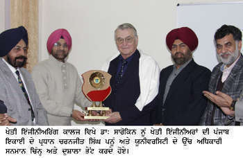 ਇਸ ਉਪਰੰਤ ਡਾ: ਪਾਵੇਲ ਸਾਰੋਕਿਨ ਨੇ ਖੇਤੀ ਇੰਜੀਨੀਅਰਿੰਗ ਕਾਲਜ ਵਿੱਚ ਯੂਨੀਵਰਸਿਟੀ ਦੇ ਉੱਚ  ਅਧਿਕਾਰੀਆਂ ਨਾਲ ਮੀਟਿੰਗ ਕੀਤੀ । ਉਨ੍ਹਾਂ ਆਖਿਆ ਕਿ ਜਿਥੇ ਮਾਸਕੋ ਸਟੇਟ ਯੂਨੀਵਰਸਿਟੀ ਦਾ ਪੰਜਾਬ ਖੇਤੀਬਾੜੀ ਯੂਨੀਵਰਸਿਟੀ ਦੇ ਖੇਤੀ ਇੰਜੀਨੀਅਰਿੰਗ ਅਤੇ ਟੈਕਨਾਲੋਜੀ ਕਾਲਜ ਨਾਲ ਵਿੱਦਿਆ ਦੇ ਖੇਤਰ ਵਿੱਚ ਆਪਸੀ ਆਦਾਨ ਪ੍ਰਦਾਨ ਦਾ ਅਹਿਦਨਾਮਾ ਹੈ ਉਥੇ ਇਸ ਅਹਿਦਨਾਮੇ ਨੂੰ ਹੁਣ ਵਿਸ਼ਾਲ ਆਧਾਰ ਦੇਣ ਦੀ ਲੋੜ ਹੈ ਅਤੇ ਇਸ ਨੂੰ ਖੋਜ ਤੀਕ ਵੀ ਵਧਾਉਣਾ ਚਾਹੀਦਾ ਹੈ। ਉਨ੍ਹਾਂ ਆਖਿਆ ਕਿ ਬਾਕੀ ਕਾਲਜਾਂ ਨਾਲ ਵੀ ਸਬੰਧ ਵਧਣੇ ਚਾਹੀਦੇ ਹਨ ਕਿਉਂਕਿ ਇਸ ਦਾ ਦੋਹਾਂ ਮੁਲਕਾਂ ਨੂੰ ਲਾਭ ਹੋਵੇਗਾ। ਇਸ ਮੌਕੇ ਵਾਈਸ ਚਾਂਸਲਰ ਡਾ: ਮਨਜੀਤ ਸਿੰਘ ਕੰਗ ਦੇ ਪ੍ਰਤੀਨਿਧ ਵਜੋਂ ਰਜਿਸਟਰਾਰ ਡਾ: ਰਾਜ ਕੁਮਾਰ ਮਹੇ ਮੀਟਿੰਗ ਵਿੱਚ ਸ਼ਾਮਿਲ ਹੋਏ। ਉਨ੍ਹਾਂ ਡਾ: ਸਾਰੋਕਿਨ ਵੱਲੋਂ ਦਿੱਤੀ ਪੇਸ਼ਕਸ਼ ਦੀ ਰੌਸ਼ਨੀ ਵਿੱਚ ਅੱਗੇ ਸਾਂਝ ਵਧਾਉਣ ਦੀ ਗੱਲ ਕਹੀ। ਯੂਨੀਵਰਸਿਟੀ ਦੇ ਨਿਰਦੇਸ਼ਕ ਖੋਜ ਡਾ: ਸਤਬੀਰ ਸਿੰਘ ਗੋਸਲ, ਖੇਤੀ ਇੰਜੀਨੀਅਰਿੰਗ ਕਾਲਜ ਦੇ ਡੀਨ ਡਾ: ਪਰਿਤਪਾਲ ਸਿੰਘ ਲੁਬਾਣਾ, ਇਸੇ ਕਾਲਜ ਦੇ ਕੋਆਰਡੀਨੇਟਰ ਖੋਜ ਅਤੇ ਪੰਜਾਬ ਖੇਤੀ ਇੰਜੀਨੀਅਰਾਂ ਦੀ ਸਭਾ ਦੇ ਪ੍ਰਧਾਨ ਇੰਜ: ਚਰਨਜੀਤ ਸਿੰਘ ਪਨੂੰ, ਸੰਚਾਰ ਕੇਂਦਰ ਦੇ ਅਪਰ ਨਿਰਦੇਸ਼ਕ ਡਾ: ਜਗਤਾਰ ਸਿੰਘ ਧੀਮਾਨ ਅਤੇ ਡਾ: ਵਿਸ਼ਾਲ ਬੈਕਟਰ ਇਸ ਮੀਟਿੰਗ ਵਿੱਚ  ਸ਼ਾਮਿਲ ਹੋਏ। ਇਸ ਮੌਕੇ ਡਾ: ਸਾਰੋਕਿਨ ਨੂੰ ਖੇਤੀ ਇੰਜੀਨੀਅਰਾਂ ਦੀ ਪੰਜਾਬ ਇਕਾਈ ਵੱਲੋਂ ਇਸ ਦੇ ਪ੍ਰਧਾਨ ਚਰਨਜੀਤ ਸਿੰਘ ਪਨੂੰ ਅਤੇ ਯੂਨੀਵਰਸਿਟੀ ਦੇ ਹੋਰ ਉੱਚ ਅਧਿਕਾਰੀਆਂ ਨੇ ਸਨਮਾਨ ਚਿੰਨ੍ਹ ਅਤੇ ਦੁਸ਼ਾਲਾ ਭੇਂਟ ਕਰਕੇ ਸਨਮਾਨਿਤ ਕੀਤਾ।
