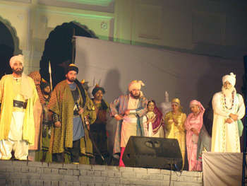 ਸ਼੍ਰੋਮਣੀ ਗੁਰਦੁਆਰਾ ਪ੍ਰਬੰਧਕ ਕਮੇਟੀ ਦੇ ਕਾਰਜਕਾਰਨੀ ਮੈਂਬਰ ਸ੍ਰ: ਕਰਨੈਲ ਸਿੰਘ ਪੰਜੋਲੀ ਨੇ ਫਤਹਿਗੜ੍ਹ ਸਾਹਿਬ ਦੇ ਸ਼ਹੀਦੀ ਜੋੜ ਮੇਲ ਦੇ ਦੂਜੇ ਦਿਨ ਆਮ ਖ਼ਾਸ ਬਾਗ ਸਰਹਿੰਦ ਵਿਖੇ ਨਾਟਕ ’ਸਰਹਿੰਦ ਦੀ ਦੀਵਾਰ’ ਦਾ ਰਸਮੀ ਉਦਘਾਟਨ ਕਰਨ ਉਪਰੰਤ ਸੰਗਤਾਂ ਨੂੰ ਸੰਬੋਧਨ ਕਰਦੇ ਹੋਏ ਦੂਜੀ ਤਸਵੀਰ ਵਿੱਚ ਨਾਟਕ ਦਾ ਦ੍ਰਿਸ਼। (ਗੁਰਿੰਦਰਜੀਤ ਸਿੰਘ ਪੀਰਜੈਨ)