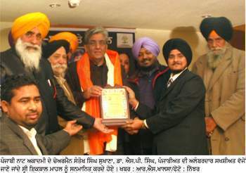ਪੰਜਾਬੀ ਨਾਟ ਅਕਾਦਮੀ ਵੱਲੋਂ ਪੰਜਾਬੀਅਤ ਦੇ ਮੁਦੱਈ ਇਕਬਾਲ ਮਾਹਲ ਨੂੰ ਕੀਤਾ ਗਿਆ ਸਨਮਾਨਿਤ