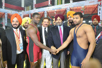 ਇਸ ਮੌਕੇ ਤੇ ਸ੍ਰ.ਬਾਦਲ ਨੇ ਅੰਤਰ ਰਾਸ਼ਟਰੀ ਕੁਸ਼ਤੀ ਮੁਕਾਬਲਿਆਂ ਦੀ ਸੁਰੂਆਤ ਭਾਰਤ ਅਤੇ ਅਮਰੀਕਾ ਦੇ ਮਹਿਲਾ ਪਹਿਲਵਾਨਾਂ ਅਤੇ ਮਰਦਾਂ ਦੇ ਕੁਸ਼ਤੀ ਮੁਕਾਬਲਿਆਂ ਦੀ ਸੁਰੂਆਤ ਭਾਰਤ ਅਤੇ ਨਾਈਜੀਰੀਆ ਦੇ ਪਹਿਲਵਾਨਾਂ ਦਾ ਦੰਗਲ ਕਰਵਾ ਕੇ ਕੀਤੀ।ਇਸਤਰੀਆਂ ਦੇ ਮੁਕਾਬਲੇ ਵਿਚ ਭਾਰਤ ਦੀ ਬਿਮਲਾ ਅਤੇ ਮਰਦਾਂ ਦੇ ਮੁਕਾਬਲੇ ਵਿਚ ਭਾਰਤ ਦੇ ਸੁਸ਼ੀਲ ਖੱਤਰੀ ਅਪਣੇ ਵਿਰੋਧੀ ਪਹਿਲਵਾਨਾਂ ਨੂੰ ਹਰਾ ਕੇ ਜੇਤੂ ਰਹੇ।ਇਸ ਮੌਕੇ ਤੇ ਜਾਣਕਾਰੀ ਦਿੰਦਿਆਂ ਪਹਿਲਵਾਨ ਕਰਤਾਰ ਸਿੰਘ ਨੇ ਦੱਸਿਆ ਕਿ ਇਹ ਚਾਰ ਰੋਜ਼ਾ ਅੰਤਰ ਰਾਸ਼ਟਰੀ ਕੁਸ਼ਤੀ ਟੂਰਨਾਮੈਂਟ 09 ਫਰਵਰੀ ਤੋਂ 12 ਫਰਵਰੀ 2011 ਤੱਕ ਕਰਵਾਇਆ ਜਾਵੇਗਾ ਜਿਸ ਵਿਚ ਸੰਸਾਰ ਭਰ ਦੇ 20 ਦੇਸ਼ਾਂ ਤੋਂ ਲਗਭਗ 300 ਪਹਿਲਵਾਨ ਲੜਕੇ ਅਤੇ ਲੜਕੀਆਂ ਹਿੱਸਾ ਲੈਣਗੇ।