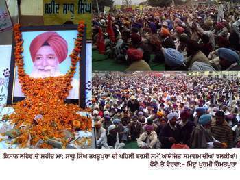 ਨਿਹਾਲ ਸਿੰਘ ਵਾਲਾ, (ਮਿੰਟੂ ਖੁਰਮੀਂ ਹਿੰਮਤਪੁਰਾ) – ਮਾਲਵੇ ਦੇ ਪ੍ਰਸਿੱਧ ਪਿੰਡ ਤਖਤੂਪੁਰਾ ਵਿਖੇ ਅੱਜ ਸਹੀਦ ਸਾਧੂ ਸਿੰਘ ਜੀ ਦੀ ਪਹਿਲੀ ਬਰਸ਼ੀ ਬੜੇ ਉਤਸਾਹ ਤੇ ਜੋਸ਼ੋ ਖ਼ਰੋਸ਼ ਨਾਲ ਮਨਾਈ ਗਈ। ਪੰਜਾਬ ਦੇ ਕੋਨੇ-ਕੋਨੇ ਤੋਂ ਇਕੱਠੇ ਹੋਏ ਹਜਾਰਾਂ ਲੋਕਾਂ ਨੇ ਪਾਰਟੀਬਾਜੀ ਤੋਂ ਉੱਪਰ ਉੱਠ ਕੇ ਸਹੀਦ ਮਾ: ਸਾਧੂ ਸਿੰਘ ਨੂੰ ਸ਼ਰਧਾਂਜਲੀ ਭੇਂਟ ਕੀਤੀ। ਤਕਰੀਬਨ 35 ਤੋਂ 40 ਹਜਾਰ ਦੇ ਭਰਵੇ-ਇਕੱਠ ਨੂੰ ਸੰਬੋਧਨ ਕਰਦੇ ਹੋਏ ਵੱਖ-ਵੱਖ ਬੁਲਾਰਿਆਂ ਨੇ ਕਿਹਾ ਕਿ ਪੰਜਾਬ ਦੇ ਕਿਸਾਨਾਂ ਮਜਦੂਰਾਂ ਦੀ ਹਾਲਤ ਬਦ ਤੋਂ ਬਦਤਰ ਹੁੰਦੀ ਜਾ ਰਹੀ ਹੈ। ਆਉਣ ਵਾਲੇ ਸਮੇਂ ਵਿਚ ਅਜਿਹਾ ਫੈਸਲਾਕੁੰਨ ਸੰਘਰਸ ਲੜਿਆ ਜਾਵੇਗਾ ਕਿ ਸਰਕਾਰਾਂ ਦੇ ਨੱਕ ਵਿਚ ਦਮ ਆ ਜਾਵੇਗਾ। ਇਹਨਾਂ ਵਿਚਾਂਰਾਂ ਦਾ ਪ੍ਰਗਟਾਵਾ ਭਾਰਤੀ ਕਿਸਾਨ ਯੂਨੀਅਨ ਦੇ ਸੂਬਾ ਪ੍ਰਧਾਨ ਜੋਗਿੰਦਰ ਸਿੰਘ ਉਗਰਾਹਾਂ ਨੇ ਲੋਕਾਂ ਦੇ ਠਾਠਾਂ ਮਾਰਦੇ ਇਕੱਠ ਵਿਚ ਕੀਤਾ। ਪੰਜਾਬ ਖੇਤ ਮਜਦੂਰ ਯੂਨੀਅਨ ਦੇ ਆਗੂਆਂ ਜੋਰਾ ਸਿੰਘ ਨਸਰਾਲੀ, ਲਛਮਣ ਸਿੰਘ ਸੇਵੇਵਾਲਾ ਅਤੇ ਕਿਸਾਨ ਆਗੂਆਂ ਸੁਖਦੇਵ ਸਿੰਘ ਕੋਕਰੀ, ਝੰਡਾ ਸਿੰਘ ਜੇਠੂਕੇ ਆਦਿ ਨੇ ਕਿਹਾ ਕਿ ਸਰਕਾਰਾਂ ਵੱਲੋਂ ਕਿਸਾਨਾਂ ਦੀਆਂ ਜਮੀਨਾਂ ਤੋਂ ਸਬਸਿਡੀਆਂ ਖੋਹਣ, ਸਰਕਾਰੀ ਅਦਾਰਿਆਂ ਦਾ ਭੋਗ ਪਾਉਣ ਦੀਆਂ ਸਾਮਰਾਜੀ ਪੱਖੀ ਨੀਤੀਆਂ ਲਾਗੂ ਕੀਤੀਆਂ ਜਾ ਰਹੀਆਂ ਹਨ। ਜਿਹਨਾਂ ਦਾ ਭਾਰਤੀ ਕਿਸਾਨ ਯੂਨੀਅਨ ਅਤੇ ਪੰਜਾਬ ਖੇਤ ਮਜਦੂਰ ਯੂਨੀਅਨ ਪੁਰਜੋਰ ਵਿਰੋਧ ਕਰਦੀ ਹੈ। ਉਹਨਾਂ ਕਿਹਾ ਕਿ ਸਾਧੂ ਸਿੰਘ ਤਖਤੂਪੁਰਾ, ਪ੍ਰਿਥੀਪਾਲ ਸਿੰਘ ਚੱਕ ਅਲੀ ਸੇਰ ਅਤੇ ਖੰਨਾ ਚਮਾਰਾ ਪਿੰਡ ਵਿਚ ਕਿਸਾਨਾਂ ਦਾ ਕਤਲ ਲੋਕ ਲਹਿਰਾਂ ਨੂੰ ਦਬਾਉਣ ਦਾ ਸਰਕਾਰਾਂ ਦਾ ਇਕ ਕੋਝਾ ਯਤਨ ਹੈ। ਉਹਨਾਂ ਕਿਹਾ ਕਿ ਸਰਕਾਰ ਦੇ ਅਜਿਹੇ ਜਾਬਰ ਕਦਮਾਂ ਦੇ ਬਾਵਜੂਦ ਪੰਜਾਬ ਦੀਆਂ ਵੱਖ-ਵੱਖ 17 ਜੱਥੇਬੰਦੀਆਂ ਇਕ ਮੁੱਠ ਹੋ ਕੇ ਲੋਕਾਂ ੳੁਪਰ ਹੋ ਰਹੇ ਜੁਲਮਾਂ ਲਈ ਢਾਲ ਬਣ ਕੇ ਖੜ੍ਹਨਗੀਆਂ। ਮਾ: ਸਾਧੂ ਸਿੰਘ ਦੇ ਵਾਰਸ ਸਰਕਾਰ ਦੇ ਕੋਝੇ ਮਨਸੂਬਿਆਂ ਨੂੰ ਪੈਰਾਂ ਹੇਠ ਰੋਲ ਕੇ ਰੱਖ ਦੇਣਗੇ। ਸਮਾਗਮ ਵਿਚ ਹਾਜਰ ਹਜਾਰਾਂ ਲੋਕਾਂ ਨੇ ਦੋ ਮਿੰਟ ਦਾ ਮੋਨ ਧਾਰ ਕੇ ਆਪਣੇ ਵਿਛੜੇ ਹੋਏ ਆਗੂ ਨੂੰ ਸਰਧਾਂਜਲੀ ਭੇਂਟ ਕਰਕੇ ਤਣੇ ਹੋਏ ਮੁੱਕਿਆਂ ਨਾਲ ਸਿਰੜੀ ਅਤੇ ਜਾਨ ਹੂਲਵੇਂ ਸੰਘਰਸਾਂ ਦੇ ਰਾਹ ਅੱਗੇ ਵਧਣ ਦਾ ਪ੍ਰਣ ਕੀਤਾ। ਇਸ ਮੌਕੇ ਕਿਸਾਂਨਾਂ ਮਜਦੂਰਾਂ ਦੇ ਸਾਂਝੇ ਸੰਘਰਸ ਵਿਚ ਸਾਂਮਲ ਭਾਰਤੀ ਕਿਸਾਨ ਯੂਨੀਅਨ (ਏਕਤਾ) ਦੇ ਬੂਟਾ ਸਿੰਘ ਬੁਰਜ ਗਿੱਲ, ਬੀ ਕੇ ਯੂ (ਕ੍ਰਾਂਤੀਕਾਰੀ) ਦੇ ਸੁਰਜੀਤ ਸਿੰਘ ਫੂਲ, ਜਮਹੂਰੀ ਕਿਸਾਨ ਸਭਾ ਦੇ ਸਤਨਾਮ ਸਿੰਘ, ਕਿਸਾਨ ਸੰਘਰਸ ਕਮੇਟੀ ਦੇ ਕਮਲਪ੍ਰੀਤ ਸਿੰਘ ਪੰਨੂੰ, ਕਿਰਤੀ ਕਿਸਾਨ ਯੂਨੀਅਨ ਦੇ ਹਰਦੇਵ ਸਿੰਘ ਸੰਧੂ ਅਤੇ ਸਤਨਾਮ ਪੰਨੂੰ ਦੇ ਇਲਾਵਾ ਰੁਲਦੂ ਸਿੰਘ ਮਾਨਸਾ, ਟੀ ਐਸ ਯੂ ਦੇ ਗੁਰਦੀਪ ਸਿੰਘ, ਮੋਲਡਰ ਅਤੇ ਸਟੀਲ ਵਰਕਰ ਯੂਨੀਅਨ ਦੇ ਹਰਜਿੰਦਰ ਸਿੰਘ ਨੇ ਵੀ ਸੰਬੋਧਨ ਕੀਤਾ। ਠਾਠਾਂ ਮਾਰਦੇ ਇਕੱਠ ਦਾ ਇੱਥੋਂ ਪਤਾ ਚਲਦਾ ਹੈ ਕਿ ਭਾਰਤੀ ਕਿਸਾਨ ਯੁਨੀਅਨ ਦੇ ਸੁਖਚੈਨ ਸਿੰਘ ਰਾਜੂ ਰਾਮਾਂ ਦੀ ਯੋਗ ਅਗਵਾਈ ਹੇਠ ਲੱਗੇ ਹੋਏ ਲੰਗਰ ਵੀ ਥੋੜ੍ਹੇ ਟਾਈਮ ਬਾਅਦ ‘ਮਸਤ’ ਹੋਣ ਦੇ ਰਾਹ ਤੁਰ ਪੈਂਦੇ ਸਨ। ਟ੍ਰੈਫਿਕ ਅਤੇ ਆੳਣ ਜਾਣ ਲਈ ਪੀਲੀਆਂ ਪੱਗਾਂ ਬੰਨ੍ਹੀ ਵਲੰਟੀਅਰ ਬੜੀ ਤਨਦੇਹੀ ਤੇ ਅਨੁਸ਼ਾਸ਼ਨ ਨਾਲ ਡਿਊਟੀ ਨਿਭਾ ਰਹੇ ਸਨ। ਆਪਣੇ ਮਰਹੂਮ ਆਗੂ ਦੀ ਯਾਦ ‘ਚ ਆਯੋਜਿਤ ਇਸ ਸਮਾਗਮ ਦੀ ਵਿਸੇਸਤਾ ਇਹ ਸੀ ਕਿ ਔਰਤਾਂ ਵੀ ਬਹੁਤ ਵੱਡੀ ਗਿਣਤੀ ਵਿਚ ਸ਼ਾਮਿਲ ਹੋਈਆਂ ਸਨ। ਸਮਾਗਮ ਦੇ ਅੰਤ ਵਿਚ ਪਿੰਡ ਤਖਤੂਪੁਰਾ ਵਿਖੇ ਕਿ
