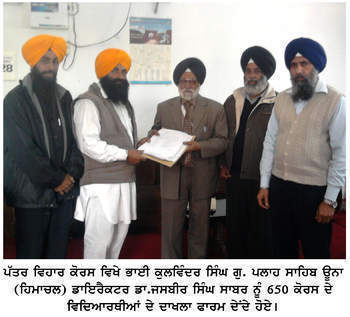 ਅੰਮ੍ਰਿਤਸਰ:-ਸਿੱਖ ਧਰਮ ਦੀ ਮੁਢਲੀ ਜਾਣਕਾਰੀ ਦੇਣ ਲਈ ਜੋ ਕੋਰਸ ਸ਼੍ਰੋਮਣੀ ਕਮੇਟੀ ਵਲੋਂ ਚਲਾਇਆ ਜਾ ਰਿਹਾ ਹੈ ਉਸ ਵਿਚ ਦੇਸ਼, ਵਿਦੇਸ਼ ਤੋਂ ਵਿਦਿਆਰਥੀਆਂ ਵਲੋਂ ਵਡੀ ਗਿਣਤੀ ਵਿਚ ਦਾਖਲਾ ਪ੍ਰਾਪਤ ਕੀਤਾ ਜਾ ਰਿਹਾ ਹੈ। ਇਸ ਸੰਬੰਧ ਵਿਚ ਗਿਆਨ ਸਾਗਰ ਕਲਾਨੌਰ ਦੇ ਪ੍ਰਿੰਸੀਪਲ ਡਾ. ਗੁਪਤਾ ਨੇ ਕਾਲਜ ਵਲੋਂ 300 ਦੇ ਕਰੀਬ ਵਿਦਿਆਰਥੀਆਂ, ਅਧਿਆਪਕਾਂ ਤੇ ਸਟਾਫ ਨੇ ਪੱਤਰ-ਵਿਹਾਰ ਕੋਰਸ ਵਿਚ ਦਾਖਲਾ ਫਾਰਮ ਜਮਾ ਕਰਾਏ ਜਿਨ੍ਹਾਂ ਨੂੰ ਡਾ. ਸਾਬਰ ਨੇ ਮੌਕੇ ਤੇ ਹੀ ਕਾਲਜ ਵਿਚ ਕੋਰਸ ਨਾਲ ਸੰਬੰਧਤ ਪਾਠ-ਸਮਗਰੀ ਦੇ ਦਿਤੀ। ਏਸੇ ਤਰਾਂ ਸਿਖ ਕੌਸਲ ਆਫ ਸਕਾਟਲੈਂਡ ਦੇ ਮੈਂਬਰ ਸ. ਤਰਨਦੀਪ ਸਿੰਘ ਫਗਵਾੜਾ ਤੇ ਬੀਬੀ ਤ੍ਰਲੋਚਨ ਕੌਰ ਪ੍ਰਚਾਰਕ ਨੇ ਮਧ-ਪ੍ਰਦੇਸ਼, ਮਹਾਰਾਸ਼ਟਰ, ਨਾਗਪੁਰ, ਬਰਵਾਲੀ ਆਦਿ ਤੋਂ 700 ਵਿਦਿਆਰਥੀਆਂ ਦੇ ਫਾਰਮ ਜਮਾਂ ਕਰਵਾਏ ਅਤੇ ਮਾਸਟਰ ਜਗੀਰ ਸਿੰਘ ਜੀ ਮੈਂਬਰ ਸ਼੍ਰੋਮਣੀ ਕਮੇਟੀ (ਹਿਮਾਚਲ ਪ੍ਰਦੇਸ਼) ਤੇ ਸ. ਕੁਲਵਿੰਦਰ ਸਿੰਘ ਗ੍ਰੰਥੀ ਨੇ ਵੀ ਹਿਮਾਚਲ ਪ੍ਰਦੇਸ਼ ਤੋਂ 150 ਵਿਦਿਆਰਥੀਆਂ ਨੂੰ ਕੋਰਸ ਵਿਚ ਦਾਖਲਾ ਦੁਆਇਆ। ਡਾ. ਜਸਬੀਰ ਸਿੰਘ ਸਾਬਰ, ਡਾਇਰੈਕਟਰ, ਪੱਤਰ-ਵਿਹਾਰ ਕੋਰਸ ਨੇ ਪੱਤਰਕਾਰਾਂ ਨਾਲ ਗੱਲਬਾਤ ਕਰਦਿਆਂ ਦਸਿਆ ਕਿ ਇਹ ਕੋਰਸ ਮਾਨਯੋਗ ਪ੍ਰਧਾਨ ਸਾਹਿਬ ਜਥੇਦਾਰ ਅਵਤਾਰ ਸਿੰਘ, ਸ਼੍ਰੋਮਣੀ ਗੁਰਦੁਆਰਾ ਪ੍ਰਬੰਧਕ ਕਮੇਟੀ, ਸ੍ਰੀ ਅੰਮ੍ਰਿਤਸਰ ਜੀ ਦੇ ਦਿਸ਼ਾ ਨਿਰਦੇਸ਼ਾਂ ਅਨੁਸਾਰ ਧਰਮ ਪ੍ਰਚਾਰ ਕਮੇਟੀ ਦੁਆਰਾ ਸਿੱਖ ਧਰਮ ਦੀ ਮੁੱਢਲੀ ਜਾਣਕਾਰੀ ਨੂੰ ਘਰ-ਘਰ ਪਹੁੰਚਾਉਣ ਲਈ ਪੰਜਾਬੀ, ਹਿੰਦੀ ਅਤੇ ਅੰਗ੍ਰੇਜ਼ੀ ਭਾਸ਼ਾ ਵਿਚ ਚਲਾਇਆ ਜਾ ਰਿਹਾ ਹੈ। ਇਸ ਕੋਰਸ ਵਿਚ ਹੁਣ ਤਕ ਭਾਰਤ ਦੇ ਹਰੇਕ ਸੂਬੇ ਅਤੇ ਵਿਦੇਸ਼ਾਂ ਤੋਂ ਵੀ ਵਿਦਿਆਰਥੀ ਸ਼ੈਸ਼ਨ ਸਾਲ 2011-12 ਲਈ ਵੱਡੀ ਗਿਣਤੀ ਵਿਚ ਦਾਖਲਾ ਲੈ ਰਹੇ ਹਨ ਜਿਨਾਂ ਦੀ ਉਮਰ 16 ਤੋਂ ਲੈ ਕੇ 95 ਸਾਲ ਤੱਕ ਹੈ। ਡਾ. ਸਾਬਰ ਨੇ ਹੋਰ ਦਸਿਆ ਕਿ ਇਸ ਕੋਰਸ ਵਿਚ ਸਕੂਲਾਂ, ਕਾਲਜਾਂ ਦੇ ਵਿਦਿਆਰਥੀ ਤੇ ਨੌਕਰੀ ਕਰਨ ਵਾਲੇ ਅਤੇ ਰਿਟਾਇਰਡ ਅਧਿਕਾਰੀ/ਕਰਮਚਾਰੀ ਅਤੇ ਵਪਾਰੀ ਵਰਗ, ਸਿੱਖ ਅਤੇ ਗੈਰ ਸਿੱਖ ਆਦਿ ਸਾਰੇ ਦਾਖਲਾ ਲੈ ਸਕਦੇ ਹਨ। ਇਸ ਕੋਰਸ ਪ੍ਰਤੀ ਲੋਕਾਂ ਵਿਚ ਭਾਰੀ ਉਤਸ਼ਾਹ ਪਾਇਆ ਜਾ ਰਿਹਾ ਹੈ ਜਿਸ ਕਰਕੇ ਦਾਖਲਾ ਪ੍ਰਾਪਤ ਕਰਨ ਦੀ ਆਖਰੀ ਤਾਰੀਖ ਜੋ 28 ਫਰਵਰੀ ਰਖੀ ਗਈ ਸੀ ਉਸਨੂੰ ਸਕੂਲਾਂ ਕਾਲਜਾਂ ਦੇ ਵਿਦਿਆਰਥੀਆਂ ਦੀ ਮੰਗ ਅਨੁਸਾਰ ਉਸਦੀ ਆਖਰੀ ਤਾਰੀਖ ਹੁਣ 31 ਮਈ ਤਕ ਵਧਾ ਦਿਤੀ ਗਈ ਹੈ। ਇਸ ਮੌਕੇ ਗੁਰਮਤਿ ਗਿਆਨ ਦੇ ਸੰਪਾਦਕ ਸ. ਸੁਰਿੰਦਰ ਸਿੰਘ ਨਮਾਣਾ ਜੀ, ਡਾ. ਜੋਗੇਸ਼ਵਰ ਸਿੰਘ, ਸ. ਦਲਜੀਤ ਸਿੰਘ, ਸ. ਹਰਜੀਤ ਸਿੰਘ, ਸ. ਰਣਜੀਤ ਸਿੰਘ ਭੋਮਾ, ਸ. ਹਰਜੀਤ ਸਿੰਘ ਕਾਹਲੋਂ, ਪ੍ਰੋ. ਜਗਦੀਪ ਕੌਰ, ਸ. ਅਵਤਾਰ ਸਿੰਘ ਬੁੱਢਾਥੇਹ, ਬੀਬੀ ਤ੍ਰਲੋਚਨ ਕੌਰ, ਸ. ਕੁਲਵਿੰਦਰ ਸਿੰਘ ਆਦਿ ਵੀ ਹਾਜਰ ਸਨ।