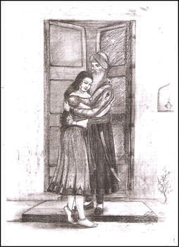 ਬਨੇਰੇ ’ਤੇ ਖੜ੍ਹੀ ਮੋਰਾਂ ਦੀ ਅਚਾਨਕ ਨਜ਼ਰ ਰਣਜੀਤ ਸਿੰਘ ਨਾਲ ਮਿਲਦੀ ਹੈ ਤੇ ਉਸਦੀ ਅੱਖ ਵਿਚ ਅੱਖਾਂ ਪਾ ਕੇ ਸਿਰ ਨੂੰ ਇਕ ਪਾਸੇ ਵੱਲ ਝਟਕਾ ਮਾਰਦੀ ਹੋਈ ਉਸਨੂੰ ਉੱਪਰ ਆਉਣ ਦਾ ਇਸ਼ਾਰਾ ਕਰਦੀ ਹੈ।ਫਿਰ ਹਸਦੀ ਹੋਈ ਅੰਦਰ ਭੱਜ ਜਾਂਦੀ ਹੈ।
