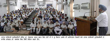 ਲੁਧਿਆਣਾ:- ਪੀ ਏ ਯੂ ਕਿਸਾਨ ਕਲੱਬ ਵੱਲੋਂ ਆਯੋਜਿਤ ਮਹੀਨਾਵਾਰ ਕਿਸਾਨਾਂ ਅਤੇ ਸਾਇੰਸਦਾਨਾਂ ਦੀ ਮਿਲਣੀ ਯੂਨੀਵਰਸਿਟੀ ਦੇ ਡਾ: ਬੌਰਲਾਗ ਕਣਕ ਭਵਨ ਵਿਖੇ ਆਯੋਜਿਤ ਕੀਤੀ ਗਈ। ਇਸ ਮੀਟਿੰਗ ਦੀ ਪ੍ਰਧਾਨਗੀ ਯੂਨੀਵਰਸਿਟੀ ਦੇ ਵਾਈਸ ਚਾਂਸਲਰ ਡਾ: ਬਲਦੇਵ ਸਿੰਘ ਢਿੱਲੋਂ ਨੇ ਕੀਤੀ। ਉਨ੍ਹਾਂ ਇਸ ਮੌਕੇ ਸੰਬੋਧਨ ਕਰਦਿਆਂ ਕਿਹਾ ਕਿ ਅਜਿਹੀਆਂ ਮਿਲਣੀਆਂ ਪਰਤੀ ਸੂਚਨਾ ਅਤੇ ਯੂਨੀਵਰਸਿਟੀ ਵੱਲੋਂ ਕੀਤੀ ਜਾ ਰਹੀ ਖੋਜ ਨੂੰ ਸੇਧ ਦੇਣ ਲਈ ਬਹੁਤ ਲਾਭਕਾਰੀ ਸਿੱਧ ਹੁੰਦੀਆਂ ਹਨ। ਡਾ: ਢਿੱਲੋਂ ਨੇ ਕਿਹਾ ਕਿ ਖੇਤ ਵਿੱਚ ਕਿਸਾਨ ਵੱਲੋਂ ਇਕੱਠੀ ਕੀਤੀ ਸੂਚਨਾ ਅਤਿਅੰਤ ਲਾਭਕਾਰੀ ਹੁੰਦੀ ਹੈ ਅਤੇ ਉਸ ਪਿੱਛੇ ਵਿਗਿਆਨ ਦੇ ਲੁਕੇ ਭੇਦਾਂ ਨੂੰ ਹਰ ਕਿਸਾਨ ਨੂੰ ਪੜਤਾਲ ਕਰਨ ਦੀ ਕੋਸ਼ਿਸ਼ ਕਰਨੀ ਚਾਹੀਦੀ ਹੈ।