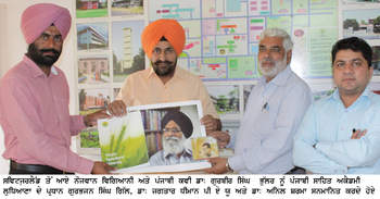 ਡਾ: ਗੁਰਬੀਰ ਸਿੰਘ ਭੁੱਲਰ ਨੂੰ ਯੂਨੀਵਰਸਿਟੀ ਦੇ ਸੰਚਾਰ ਕੇਦਰ ਵਿਖੇ ਉਨ੍ਹਾਂ ਦੇ ਪ੍ਰੇਰਨਾ ਸਰੋਤ ਡਾ: ਸੁਰਜੀਤ ਪਾਤਰ ਦਾ ਪੋਸਟਰ ਡਾ: ਜਗਤਾਰ ਸਿੰਘ ਧੀਮਾਨ ਅਪਰ ਨਿਰਦੇਸ਼ਕ ਸੰਚਾਰ ਅਤੇ ਪੰਜਾਬੀ ਸਾਹਿਤ ਅਕੈਡਮੀ ਲੁਧਿਆਣਾ ਦੇ ਪ੍ਰਧਾਨ ਗੁਰਭਜਨ ਸਿੰਘ ਗਿੱਲ ਨੇ ਭੇਂਟ ਕੀਤਾ। ਉਨ੍ਹਾਂ ਨੂੰ ਇਸ ਮੌਕੇ ਯੂਨੀਵਰਸਿਟੀ ਬਾਰੇ ਜਾਣਕਾਰੀ ਪੁਸਤਕ ਤੋਂ ਇਲਾਵਾ ਪੰਜਾਬੀ ਕਵੀ ਤਰਲੋਚਨ ਲੋਚੀ ਦੀਆਂ ਗਾਈਆਂ ਪੰਜਾਬੀ ਗਜ਼ਲਾਂ ਦੀ ਸੀ ਡੀ ‘ਸਰਵਰ’ ਵੀ ਭੇਂਟ ਕੀਤੀ ਗਈ। ਡਾ: ਭੁੱਲਰ ਪੰਜਾਬ ਖੇਤੀਬਾੜੀ ਯੂਨੀਵਰਸਿਟੀ ਲੁਧਿਆਣਾ ਦੇ ਵਿਦਿਆਰਥੀ ਹੋਣ ਸਮੇਂ ਜਿਥੇ ਪੰਜਾਬੀ ਕਵੀ ਵਜੋਂ ਪਛਾਣ ਰੱਖਦੇ ਸਨ ਉਥੇ ਨਾਟਕ ਸਰਗਰਮੀਆਂ ਰਾਹੀਂ ਗਿਆਨ ਵਿਗਿਆਨ ਪਸਾਰ ਲਈ ਵੀ ਡਾ: ਅਨਿਲ ਸ਼ਰਮਾ ਦੀ ਅਗਵਾਈ ਹੇਠ ਨਰਮਾ ਪੱਟੀ ਵਿੱਚ ਕੀਟ ਨਾਸ਼ਕ ਜ਼ਹਿਰਾਂ ਦੀ ਸੰਕੋਚਵੀਂ ਵਰਤੋਂ ਬਾਰੇ ਲੋਕ ਚੇਤਨਾ ਉਸਾਰਨ ਵਾਲੀ ਲਹਿਰ ਦਾ ਮੁੱਖ ਅੰਗ ਰਹੇ ਹਨ।