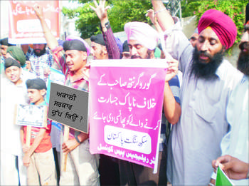 ਸਿੱਖ ਸੰਗਤਾਂ ਦੇ ਹੱਥਾਂ ਵਿੱਚ ਬੈਨਰ ਫੜੇ ਹੋਏ ਸਨ।ਪੰਜਾਬ ਵਿੱਚ ਹਰ ਤੀਜੇ ਦਿਨ ਕੋਈ ਨਾ ਕੋਈ ਇਹੋ ਜਿਹੀਆਂ ਘਟਨਾਵਾਂ ਦੀਆਂ ਖ਼ਬਰਾਂ ਨੇ ਪਾਕਿਸਤਾਨੀ ਸਿੱਖਾਂ ਦੇ ਮਨਾ ਨੂੰ ਬਹਤ ਠੇਸ ਪਹੁੰਚਾਈ ਹੈ। ਜਿਸ ਦਾ ਸਬੂਤ ਅੱਜ ਪੂਰੇ ਲਾਹੌਰ ਸ਼ਹਿਰ ਨੇ ਦੇਖਿਆ ਕਿ ਪਾਕਿਸਤਾਨੀ ਸਿੱਖਾਂ ਦੇ ਦਿਲ ਇਸ ਮੰਦਭਾਗੀ ਘਟਨਾ ਕਰਕੇ ਕਿੰਨੇ ਗੁੱਸੇ ਵਿੱਚ ਤੇ ਦੁਖੇ ਨੇ। ਇਸ ਮੋਕੇ ਤੇ ਬੋਲਦਿਆਂ ਪੀ.ਐਸ.ਜੀ.ਪੀ.ਸੀ ਦੇ ਪ੍ਰਧਾਨ ਸ੍ਰ. ਸ਼ਾਮ ਸਿੰਘ ਹੋਣਾ ਕਿਹਾ ਕਿ ਭਾਰਤ ਦੀ ਹਕੂਮਤ ਤੇ ਪੰਜਾਬ ਦੀ ਅਕਾਲੀ ਸਰਕਾਰ ਨੂੰ ਚਾਹੀਦਾ ਹੈ ਕਿ ਉਹ ਇਹੋ ਜਿਹੀਆਂ ਵਾਪਰਨ ਵਾਲੀਆਂ ਘਟਨਾਵਾਂ ਨੂੰ ਰੋਕੇ।