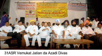 ਅੰਮ੍ਰਿਤਸਰ – ਵਿਮੁਕਤ ਜਾਤੀਆਂ ਵਲੋਂ ਅੱਜ 59 ਵੇਂ ਸੰਪੂਰਨ ਆਜ਼ਾਦੀ ਦਿਵਸ ਬੜੀ ਧੂਮ ਧਾਮ ਤੇ ਉਤਸ਼ਾਹ ਨਾਲ ਮਨਾਇਆ ਗਿਆ। ਸਥਾਨਿਕ ਗੁਰੂ ਨਾਨਕ ਭਵਨ ਵਿਖੇ ਕੀਤੇ ਗਏ ਆਜ਼ਾਦੀ ਸਮਾਗਮ ਦੌਰਾਨ ਦੇਸ਼ ਦੇ ਕੋਨੇ ਕੋਨੇ ਤੋਂ ਪਹੁੰਚੇ ਵਿਮੁਕਤ ਜਾਤੀਆਂ ਦੇ ਆਗੂਆਂ ਦੀ ਮੌਜੂਦਗੀ ਵਿੱਚ ਵੱਖ ਵੱਖ ਬੁਲਾਰਿਆਂ ਨੇ ਕਾਂਗਰਸ ਪਾਰਟੀ ਦੀ ਸਖ਼ਤ ਨੁਕਤਾਚੀਨੀ ਕਰਦਿਆਂ ਆਗਾਮੀ ਪੰਜਾਬ ਵਿਧਾਨ ਸਭਾ ਚੋਣਾਂ ਦੌਰਾਨ ਅਕਾਲੀ ਭਾਜਪਾ ਗੱਠਜੋੜ ਦੇ ਉਮੀਦਵਾਰਾਂ ਨੂੰ ਭਾਰੀ ਵੋਟਾਂ ਨਾਲ ਜਿੱਤ ਦੁਆਉਣ ਅਤੇ ਅਕਾਲੀ ਦਲ ਨੂੰ ਹਰ ਤਰਾਂ ਸਮਰਥਨ ਦੇਣ ਦਾ ਐਲਾਨ ਕੀਤਾ।