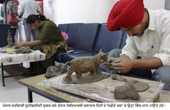 ਮਿੱਟੀ ਦੇ ਖਿਡੌਣੇ ਬਣਾਉਣ ਦੇ ਸੈਸ਼ਨ ਦੀ ਪ੍ਰਧਾਨਗੀ ਕਰਦਿਆਂ ਯੂਨੀਵਰਸਿਟੀ ਲਾਇਬ੍ਰੇਰੀਅਨ ਡਾ: ਜਸਵਿੰਦਰ ਕੌਰ ਸਾਂਘਾ ਨੇ ਆਖਿਆ ਕਿ ਰੱਬ ਮਿੱਟੀ ਦਾ ਬੰਦਾ ਬਣਾ ਕੇ ਉਸ ਵਿੱਚ ਜਾਨ ਪਾਉਂਦਾ ਹੈ ਪਰ ਕਲਾਕਾਰ ਮਿੱਟੀ ਵਿੱਚ ਜਾਨ ਪਾ ਕੇ ਆਪਣੇ ਖਿਡੌਣਿਆਂ ਨੂੰ ਬੋਲਣਯੋਗ ਬਣਾਉਂਦਾ ਹੈ। ਇਹ ਮਨੁੱਖੀ ਹੱਥਾਂ ਦੀ ਹੀ ਕਰਾਮਾਤ ਹੈ ਕਿ ਮਿੱਟੀ ਦੇ ਖਿਡੌਣੇ ਸਾਨੂੰ ਬਹੁਤ ਮਹੱਤਵਪੂਰਨ ਸੁਨੇਹਾ ਦੇ ਜਾਂਦੇ ਹਨ। ਪੋਸਟਰ ਮੇਕਿੰਗ ਮੁਕਾਬਲਿਆਂ ਦੀ ਪ੍ਰਧਾਨਗੀ  ਡਾ: ਹਰਜੀਤ ਸਿੰਘ ਧਾਲੀਵਾਲ ਨੇ ਕੀਤੀ।