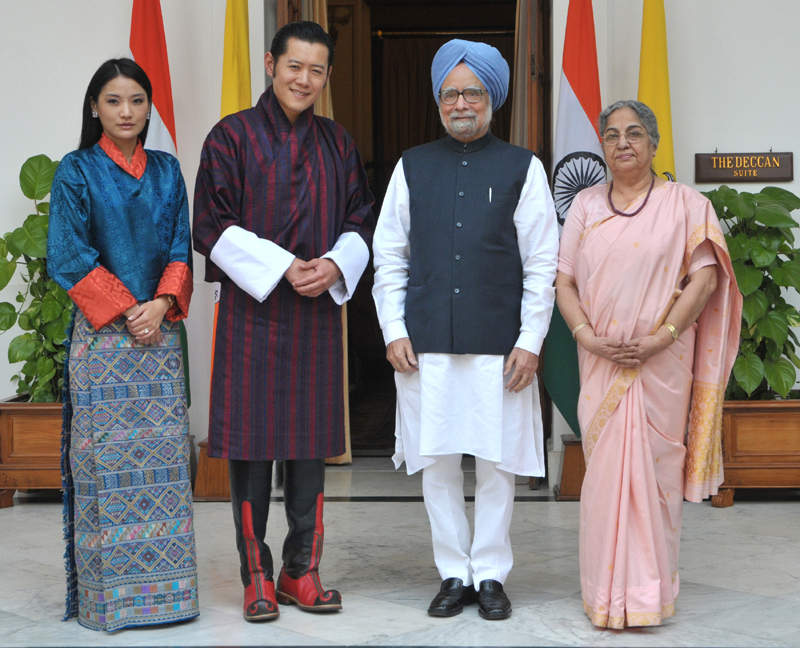 ਪ੍ਰਧਾਨਮੰਤਰੀ ਮਨਮੋਹਨ ਸਿੰਘ ਭੂਟਾਨ ਦੇ ਰਾਜਾ ਅਤੇ ਰਾਣੀ ਦੇ ਨਾਲ