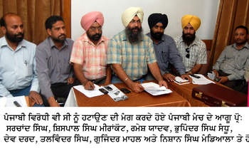 ਅੱਜ ਇੱਥੇ ਪੰਜਾਬੀ ਮੰਚ ਦੀ ਅਗਵਾਈ ਹੇਠ ਵੱਖ ਵੱਖ ਸਾਹਿੱਤਕ ਅਤੇ ਸਮਾਜਕ ਸਭਿਆਚਾਰਕ ਜਥੇਬੰਦੀਆਂ ਦੀ ਮੀਟਿੰਗ ਵਿੱਚ ਲਏ ਗਏ ਫੈਸਲਿਆਂ ਦੀ ਜਾਣਕਾਰੀ ਦਿੰਦਿਆਂ ਮੰਚ ਦੇ ਮੁੱਖ ਬੁਲਾਰੇ ਪ੍ਰੋ: ਸਰਚਾਂਦ ਸਿੰਘ ਨੇ ਕਿਹਾ ਕਿ ਗੁਰੂ ਨਾਨਕ ਦੇਵ ਯੂਨੀਵਰਸਿਟੀ ਦਾ ਵਾਇਸ ਚਾਂਸਲਰ ਅਜੈਬ ਸਿੰਘ ਬਰਾੜ ਪੰਜਾਬੀ ਵਿਰੋਧੀ ਤਾਕਤਾਂ ਦੇ ਹੱਥਾਂ ਵਿੱਚ ਖੇਡ ਰਿਹਾ ਹੈ , ਉਹਨਾਂ ਕਿਹਾ ਕਿ ਹੁਣ ਅੰਡਰ ਗਰੈਜੂਏਟ ਕਲਾਸਾਂ ਵਿੱਚੋਂ ਪੰਜਾਬੀ ਨੂੰ ਖਤਮ ਕਰਨ ਦੀਆਂ ਤਿਆਰੀਆਂ ਨਾਲ ਉਸ ਨੇ ਦੂਸਰੀ ਵਾਰ ਪੰਜਾਬੀ ਭਾਸ਼ਾ , ਸਾਹਿੱਤ ਅਤੇ ਸਭਿਆਚਾਰ ਉੱਪਰ ਵਾਰ ਕੀਤਾ ਹੈ। ਜੋ ਕਿ ਨਾ ਕਾਬਲੇ ਬਰਦਾਸ਼ਤ ਹੈ। ਉਹਨਾਂ ਕਿਹਾ ਕਿ ਵੀ. ਸੀ. ਦੇ ਉਕਤ ਪੰਜਾਬੀ ਵਿਰੋਧੀ ਨਕਾਰਾਤਮਿਕ ਵਤੀਰੇ ਨਾਲ ਉਸ ਦਾ ਪੰਜਾਬੀ ਵਿਰੋਧੀ ਚਿਹਰਾ ਬੇਨਕਾਬ ਹੋ ਚੁੱਕਿਆ ਹੈ ਉੱਥੇ ਪੰਜਾਬੀ ਪ੍ਰੇਮੀਆਂ ਵਿੱਚ ਵਿਆਪਕ ਰੋਸ ਫੈਲ ਗਿਆ ਹੈ। ਉਹਨਾਂ ਕਿਹਾ ਕਿ ਉਕਤ ਯੂਨੀਵਰਸਿਟੀ ਦੀ ਸਥਾਪਨਾ ਦਾ ਮਨੋਰਥ ਪੰਜਾਬੀ ਭਾਸ਼ਾ ਸਾਹਿੱਤ ਅਤੇ ਸਭਿਆਚਾਰ ਨੂੰ ਪ੍ਰਫੁਲਿਤ ਕਰਨਾ ਹੈ। ਪਰ ਮੌਜੂਦਾ ਵੀ ਸੀ ਅਜੈਬ ਸਿੰਘ ਬਰਾੜ ਵੱਲੋਂ ਪੰਜਾਬੀ ਵਿਰੋਧੀ ਸਾਜ਼ਿਸ਼ ਨੇ ਨਾ ਕੇਵਲ ਯੂਨੀਵਰਸਿਟੀ ਦੇ ਸਥਾਪਨਾ ਦੇ ਸਰੋਕਾਰਾਂ ਨੂੰ ਹੀ ਸਟ ਮਾਰੀ ਹੈ ਸਗੋਂ ਪੰਜਾਬੀ ਪ੍ਰੇਮੀਆਂ ਦੇ ਮਨਾਂ ਨੂੰ ਵੀ ਗਹਿਰੀ ਠੇਸ ਪਹੁੰਚਾਈ ਹੈ। ਉਹਨਾਂ ਚੇਤਾਵਨੀ ਦਿੰਦਿਆਂ ਕਿਹਾ ਕਿ ਜੇਕਰ ਵੀ ਸੀ ਨੇ ਪੰਜਾਬੀ ਵਿਰੋਧੀ ਨੀਤੀਆਂ ਨਾ ਤਿਆਗੀਆਂ ਤਾਂ ਮੰਚ ਪੰਜਾਬ ਹੀ ਨਹੀਂ ਸਗੋਂ ਦੁਨਿਆ ਦੇ ਸਮੂਹ ਪੰਜਾਬੀ ਪ੍ਰੇਮੀਆਂ ਤੇ ਜਥੇਬੰਦੀਆਂ ਨੂੰ ਨਾਲ ਲੈ ਕੇ ਉਕਤ ਵੀ ਸੀ ਵਿਰੁੱਧ ਮੁਹਾਜ਼ ਖੜ੍ਹਾ ਕਰਕੇ ਜ਼ੋਰਦਾਰ ਮੁਜ਼ਾਹਰਾ ਕਰੇਗਾ। ਉਹਨਾਂ ਵੀ ਸੀ ਵੱਲੋਂ ਬਣਾਈ ਗਈ 22 ਮੈਂਬਰੀ ਕਮੇਟੀ ਨੂੰ ਵੀ ਅਪੀਲ ਕੀਤੀ ਕਿ ਉਹ ਵੀ ਸੀ ਵੱਲੋਂ ਪੰਜਾਬੀ ਵਿਰੋਧੀ ਲਈ ਜਾ ਰਹੇ ਫੈਸਲੇ ਦੀ ਹਿਮਾਇਤ ਨਾ ਕਰਕੇ ਸੱਚੇ ਪੰਜਾਬੀ ਹੋਣ ਦਾ ਸਬੂਤ ਦੇਣ। ਬੁਲਾਰੇ ਨੇ ਇਹ ਵੀ ਕਿਹਾ ਕਿ ਪੰਜਾਬੀ ਵਿਰੋਧੀ ਸਾਜ਼ਿਸ਼ਾਂ ਵਿੱਚ ਲਿਪਟ ਵੀ. ਸੀ. ਦਾ ਸਾਥ ਦੇ ਰਹੇ ਪਿੰ੍ਰਸੀਪਲਾਂ ਦੀ ਉਹ ਸਖ਼ਤ ਨਿੰਦਾ ਕਰਦੇ ਹਨ ਅਤੇ ਛੇਤੀ ਹੀ ਉਹਨਾਂ ਦੇ ਚਿਹਰੇ ਵੀ ਬੇ ਨਕਾਬ ਕੀਤੇ ਜਾਣਗੇ।
