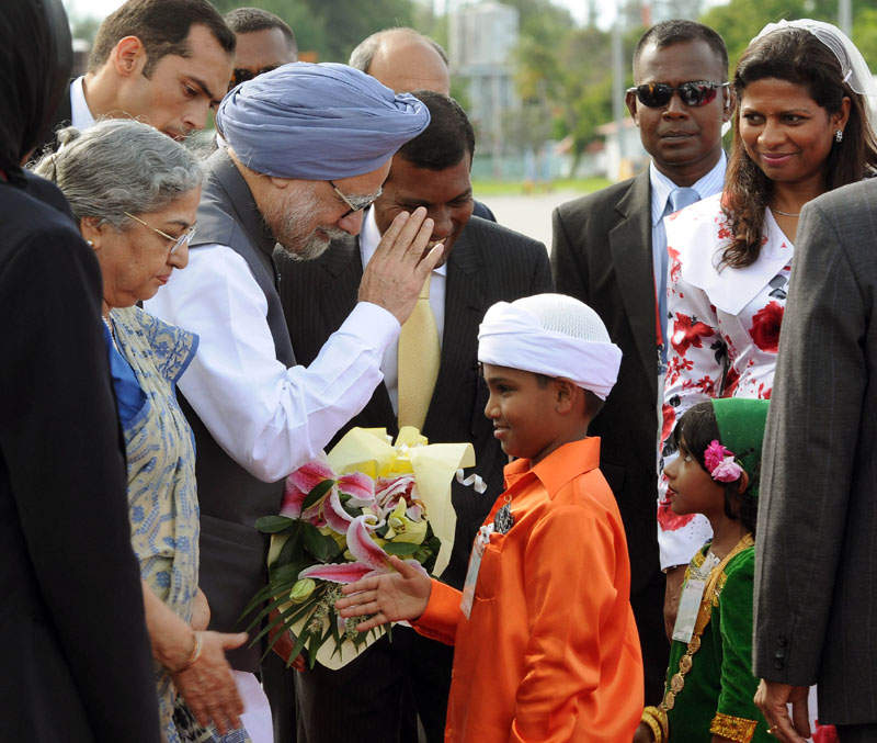 ਪ੍ਰਧਾਨਮੰਤਰੀ ਮਨਮੋਹਨ ਸਿੰਘ ਦੇ ਮਾਲਦਿਵਸ ਪਹੁੰਚਣ ਤੇ ਸਵਾਗਤ ਕਰਦੇ ਹੋਏ ਬੱਚੇ