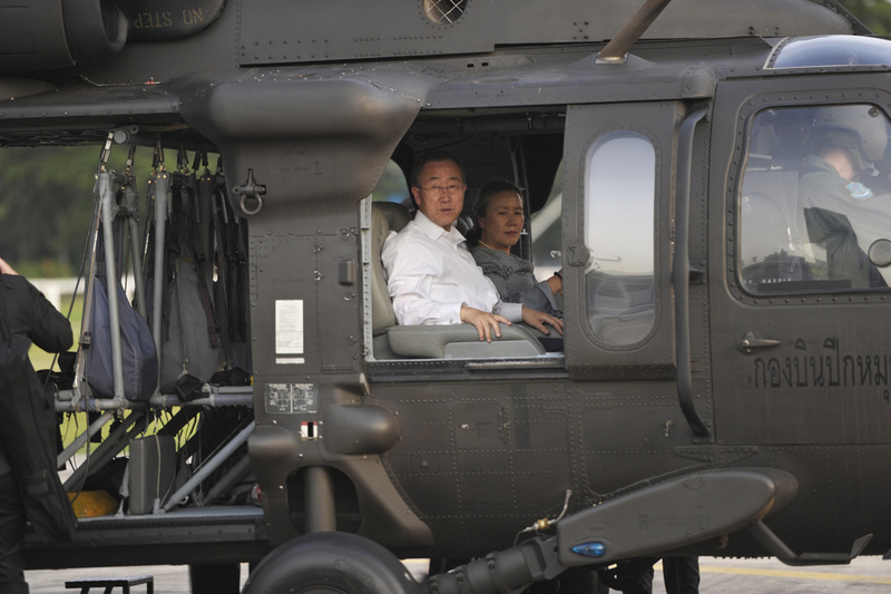 ਜਨਰਲ ਸਕੱਤਰ ਬਾਨ ਕੀ-ਮੂਨ ਹੜ੍ਹ ਨਾਲ ਪ੍ਰਭਾਵਿਤ ਬੰਕੋਕ ਦਾ ਹੈਲੀਕਾਪਟਰ ਰਹੀਂ ਦੌਰਾ ਕਰਦੇ ਹੋਏ