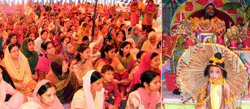 ਮੌਜੂਦ ਸ਼ਰਧਾਲੂ ਤੇ ਪ੍ਰਵਚਨ ਕਰਦੇ ਹੋਏ ਸਵਾਮੀ ਕਮਲਾਨੰਦ ਜੀ।(ਫੋਟੋ: ਸੁਨੀਲ ਬਾਂਸਲ)