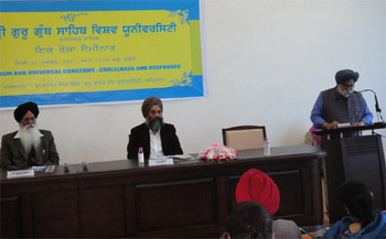 ਸ੍ਰੀ ਗੁਰੂ ਗ੍ਰੰਥ ਸਾਹਿਬ ਵਿਸ਼ਵ ਯੂਨੀਵਰਸਿਟੀ ਫਤਹਿਗੜ੍ਹ ਸਾਹਿਬ ’ਚ ਸਿੱਖੀ ਅਤੇ ਵਿਸ਼ਵ ਵਿਆਪੀ ਸਰੋਕਾਰ, ਚੁਣੌਤੀਆਂ ਅਤੇ ਸਮਾਧਾਨ ਵਿਸ਼ੇ ਤੇ ਸੈਮੀਨਾਰ ਦੋਰਾਨ ਪਰਚਾ ਪੜਦੇ ਵਿਦਵਾਨ ਸਾਹਿਬਾਨ (ਗੁਰਿੰਦਰਜੀਤ ਸਿੰਘ ਪੀਰਜੈਨ)