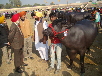 ਅੱਜ ਦੇ ਸਮਾਗਮ ਦੇ ਮੁੱਖ ਮਹਿਮਾਨ ਦੇ ਤੌਰ ਤੇ ਡਾ: ਅਮਰਜੀਤ ਸਿੰਘ ਨੰਦਾ ਕਮਿਸ਼ਨਰ ਪਸ਼ੂ ਪਾਲਣ ਵਿਭਾਗ ਭਾਰਤ ਸਰਕਾਰ ਸ਼ਾਮਿਲ ਹੋਏ, ਸਮਾਗਮ ਦੀ ਪ੍ਰਧਾਨਗੀ ਸ: ਮਿੱਤ ਸਿੰਘ ਬਰਾੜ ਪ੍ਰਧਾਨ ਨਗਰ ਕੌਸ਼ਲ ਨੇ ਕੀਤੀ ਅਤੇ ਵਿਸੇਸ਼ ਮਹਿਮਾਨ ਵਜੋਂ ਡਾ: ਪੀ.ਕੇ. ਉੱਪਲ ਪੁੱਜੇ । ਇਸ ਮੌਕੇ ਡਾ: ਨੰਦਾ ਨੇ ਪੱਤਰਕਾਰਾਂ ਨਾਲ ਗੱਲਬਾਤ ਕਰਦਿਆਂ ਪੰਜਾਬ ਸਰਕਾਰ ਵੱਲੋਂ ਕੌਮੀ ਪੱਧਰ ਦੇ ਇਸ ਮੁਕਾਬਲੇ ਦੇ ਆਯੋਜਨ ਲਈ ਪੰਜਾਬ ਸਰਕਾਰ ਨੂੰ ਵਧਾਈ ਦਿੰਦਿਆਂ ਕਿਹਾ ਕਿ ਅਜਿਹੇ ਮੁਕਾਬਲੇ ਦੂਜੇ ਰਾਜਾਂ ਲਈ ਵੀ ਸੇਧ ਦਾ ਸਬੱਬ ਬਣਦੇ ਹਨ ਉੱਥੇ ਇੰਨ੍ਹਾਂ ਰਾਹੀ ਪਸ਼ੂ ਪਾਲਕਾਂ ਵਿਚ ਨਵੀਆਂ ਤਕਨੀਕਾਂ ਦੇ ਪਸਾਰੇ ਦੇ ਨਾਲ ਨਾਲ ਨਸਲ ਸੁਧਾਰ ਪ੍ਰਤੀ ਵੀ ਨਵੀਂ ਰੂਚੀ ਪੈਦਾ ਹੁੰਦੀ ਹੈ। ਉਨ੍ਹਾਂ ਪੰਜਾਬ ਵੱਲੋਂ ਪਸ਼ੂ ਪਾਲਣ ਦੇ ਖੇਤਰ ਵਿਚ ਮਾਰੀਆਂ ਮੱਲਾਂ ਦੀ ਗੱਲ ਕਰਦਿਆਂ ਕਿਹਾ ਕਿ ਪੰਜਾਬ ਨੇ ਨਸਲ ਸੁਧਾਰ ਪ੍ਰੋਗਰਾਮ ਨੂੰ ਸਫਲਤਾ ਨਾਲ ਲਾਗੂ ਕਰਕੇ ਘੱਟ ਪਸ਼ੂਆਂ ਤੋਂ ਵਧੇਰੇ ਉਤਪਾਦਨ ਪ੍ਰਾਪਤ ਕਰਕੇ ਦੇਸ਼ ਦੀ ਉੱਨਤੀ ਵਿਚ ਯੋਗਦਾਨ ਪਾਇਆ ਹੈ। ਉਨ੍ਹਾਂ ਕਿਹਾ ਕਿ ਦੂਜੇ ਰਾਜਾਂ ਨੂੰ ਵੀ ਪੰਜਾਬ ਤੋਂ ਸੇਧ ਲੈ ਕੇ ਨਸਲ ਸੁਧਾਰ ਪ੍ਰੋਗਰਾਮ ਤੇਜ ਕਰਨੇ ਚਾਹੀਦੇ ਹਨ ਤਾਂ ਜੋ ਬਿਨ੍ਹਾਂ ਪਸ਼ੂਆਂ ਦੀ ਅਬਾਦੀ ਵਧਾਏ ਅਸੀਂ ਮੁਲਕ ਵਿਚ ਪਸ਼ੂਆਂ ਤੋਂ ਮਿਲਣ ਵਾਲੇ ਪਦਾਰਥਾਂ ਦੀ ਉਪਜ ਵਧਾ ਸਕੀਏ।