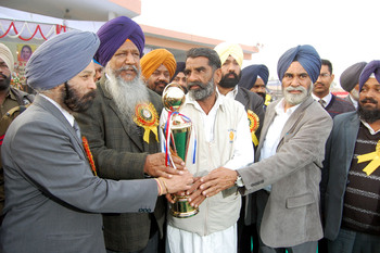 ਕੌਮੀ ਪਸ਼ੂ ਧਨ ਚੈਂਪੀਅਨਸ਼ਿਪ ਵਿਚ ਜੇਤੂ ਪਸ਼ੂ ਪਾਲਕਾਂ ਨੂੰ ਇਨਾਮ ਦਿੰਦੇ ਹੋਏ ਪਸ਼ੂ ਪਾਲਣ ਮੰਤਰੀ ਗੁਲਜ਼ਾਰ ਸਿੰਘ ਰਣੀਕੇ ਤੇ ਹੋਰ।(ਫੋਟੋ: ਸੁਨੀਲ ਬਾਂਸਲ)