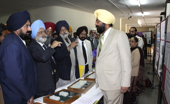 ਪੰਜਾਬ ਐਗਰੀਕਲਚਰਲ ਯੂਨੀਵਰਸਿਟੀ ਲੁਧਿਆਣਾ ਦੇ ਵਾਈਸ ਚਾਂਸਲਰ ਡਾ: ਬਲਦੇਵ ਸਿੰਘ ਢਿੱਲੋਂ ਅਤੇ ਡਾਇਰੈਕਟਰ ਖੇਤੀਬਾੜੀ ਪੰਜਾਬ ਡਾ: ਮੰਗਲ ਸਿੰਘ ਸੰਧੂ ਨਰਮੇ ਦੀਆਂ ਨਵੀਆਂ ਕਿਸਮਾਂ ਸੰਬੰਧੀ ਮਾਹਿਰਾਂ ਪਾਸੋਂ ਜਾਣਕਾਰੀ ਹਾਸਿਲ ਕਰਦੇ ਹੋਏ।
