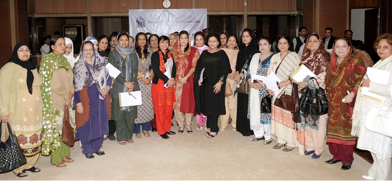 ਪਾਕਿਸਤਾਨੀ ਪੱਤਰਕਾਰ ਔਰਤਾਂ, ਸੰਸਦ ਮੈਂਬਰ ਅਤੇ ਸਪੀਕਰ ਫਹਿਮਦਾ ਮਿਰਜ਼ਾ ਨਾਲ ਕੁਝ ਪੱਲ ਸਾਂਝੇ ਕਰਦੇ ਹੋਏ