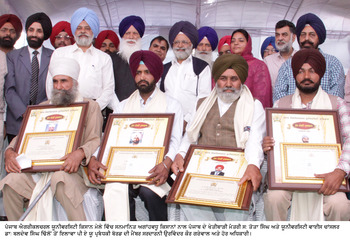 ਮਾਣਯੋਗ ਖੇਤੀਬਾੜੀ ਮੰਤਰੀ ਸ: ਤੋਤਾ ਸਿੰਘ ਜੀ ਨੇ ਇਸ ਮੌਕੇ ਚਾਰ ਅਗਾਂਹਵਧੂ ਕਿਸਾਨਾਂ ਸ: ਸੁਰਜੀਤ ਸਿੰਘ ਸੰਧੂ ਪਿੰਡ ਆਰੀਆਂਵਾਲਾ ਜ਼ਿਲ੍ਹਾ ਕਪੂਰਥਲਾ, ਸ: ਪਰਮਜੀਤ ਸਿੰਘ ਸਹੌਲੀ ਜ਼ਿਲ੍ਹਾ ਪਟਿਆਲਾ, ਨੂੰ ਬਾਗਬਾਨੀ ਵਿਕਾਸ ਲਈ, ਸ: ਜਗਦੀਪ ਸਿੰਘ ਪਿੰਡ ਆਸਲ ਜ਼ਿਲ੍ਹਾ ਫੀਰੋਜ਼ਪੁਰ ਤੇ ਸ: ਗੁਲਜ਼ਾਰ ਸਿੰਘ ਪਿੰਡ ਕੱਟੂ ਜ਼ਿਲ੍ਹਾ ਬਰਨਾਲਾ ਨੂੰ ਵਿਕਸਤ ਖੇਤੀਬਾੜੀ ਲਈ ਮੁੱਖ ਮੰਤਰੀ ਪੁਰਸਕਾਰ ਨਾਲ ਸਨਮਾਨਿਤ ਕੀਤਾ। ਚਹੁੰ ਕਿਸਾਨਾਂ ਨੂੰ 12 ਹਜ਼ਾਰ 500 ਰੁਪਏ ਪ੍ਰਤੀ ਕਿਸਾਨ ਸਨਮਾਨ ਰਾਸ਼ੀ ਤੋਂ ਇਲਾਵਾ ਸਨਮਾਨ ਪੱਤਰ, ਸਨਦ ਅਤੇ ਦੋਸ਼ਾਲਾ ਭੇਂਟ ਕਰਕੇ ਸਨਮਾਨਿਤ ਕੀਤਾ। ਫੀਰੋਜ਼ਪੁਰ ਜ਼ਿਲ੍ਹੇ ਦੇ ਪਿੰਡ ਆਸਲ ਵਾਸੀ ਕਿਸਾਨ ਸ: ਜਗਦੀਪ ਸਿੰਘ ਨੇ ਯੂਨੀਵਰਸਿਟੀ ਵੱਲੋਂ ਮਿਲੀ ਸਨਮਾਨ ਰਾਸ਼ੀ ਯੂਨੀਵਰਸਿਟੀ ਦੇ ਖੋਜ ਕਾਰਜਾਂ ਲਈ ਮੌਕੇ ਤੇ ਹੀ ਵਾਪਸ ਭੇਂਟ ਕਰ ਦਿੱਤੀ। ਮਾਣਯੋਗ ਖੇਤੀਬਾੜੀ ਮੰਤਰੀ ਅਤੇ ਵਾਈਸ ਚਾਂਸਲਰ ਸਾਹਿਬ ਨੇ ਸ: ਜਗਦੀਪ ਸਿੰਘ ਆਸਲ ਦੀ ਇਸ ਦਰਿਆਦਿਲੀ ਦੀ ਸ਼ਲਾਘਾ ਕੀਤੀ।