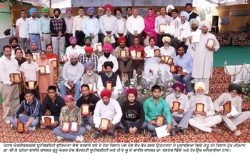 ਲੁਧਿਆਣਾ:-ਪੰਜਾਬ ਐਗਰੀਕਲਚਰਲ ਯੂਨੀਵਰਸਿਟੀ ਕਿਸਾਨ ਮੇਲੇ ਦੇ ਦੂਜੇ ਦਿਨ ਪੰਜਾਬ ਭਰ ਤੋਂ ਆਏ ਅਗਾਂਹਵਧੂ ਕਿਸਾਨਾਂ ਨੂੰ ਵੱਖ ਵੱਖ ਫ਼ਸਲਾਂ ਦੇ ਮੁਕਾਬਲਿਆਂ ’ਚ ਜੇਤੂ ਰਹਿਣ ਤੇ ਸਨਮਾਨਿਤ ਕੀਤਾ ਗਿਆ। ਇਨਾਮ ਜੇਤੂਆਂ ’ਚ ਸੰਗਰੂਰ, ਫਾਜ਼ਿਲਕਾ, ਪਟਿਆਲਾ ਤੇ ਬਠਿੰਡਾ ਦੇ ਕਿਸਾਨਾਂ ਨੇ ਸਭ ਤੋਂ ਵੱਧ ਇਨਾਮ ਜਿੱਤੇ । ਗੁਰੂ ਅੰਗਦ ਦੇਵ ਵੈਟਰਨਰੀ ਯੂਨੀਵਰਸਿਟੀ ਦੇ ਵਾਈਸ ਚਾਂਸਲਰ ਡਾ: ਵੀ ਕੇ ਤਨੇਜਾ ਅਤੇ ਪੰਜਾਬ ਐਗਰੀਕਲਚਰਲ ਯੂਨੀਵਰਸਿਟੀ ਦੇ ਵਾਈਸ ਚਾਂਸਲਰ ਡਾ: ਬਲਦੇਵ ਸਿੰਘ ਢਿੱਲੋਂ ਨੇ ਜੇਤੂ ਕਿਸਾਨਾਂ ਨੂੰ ਪੁਰਸਕਾਰ ਪ੍ਰਦਾਨ ਕੀਤੇ। ਵੱਖ ਵੱਖ ਫ਼ਸਲਾਂ ਦੇ ਇਨਾਮ ਜੇਤੂ ਇੰਜ ਹਨ।