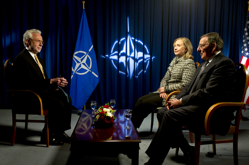ਹਿਲਰੀ ਕਲਿੰਟਨ ਸੈਨਾ ਦੇ ਉਚ ਅਧਿਕਾਰੀਆਂ ਨਾਲ ਮੀਟਿੰਗ ਕਰਦੇ ਹੋਏ