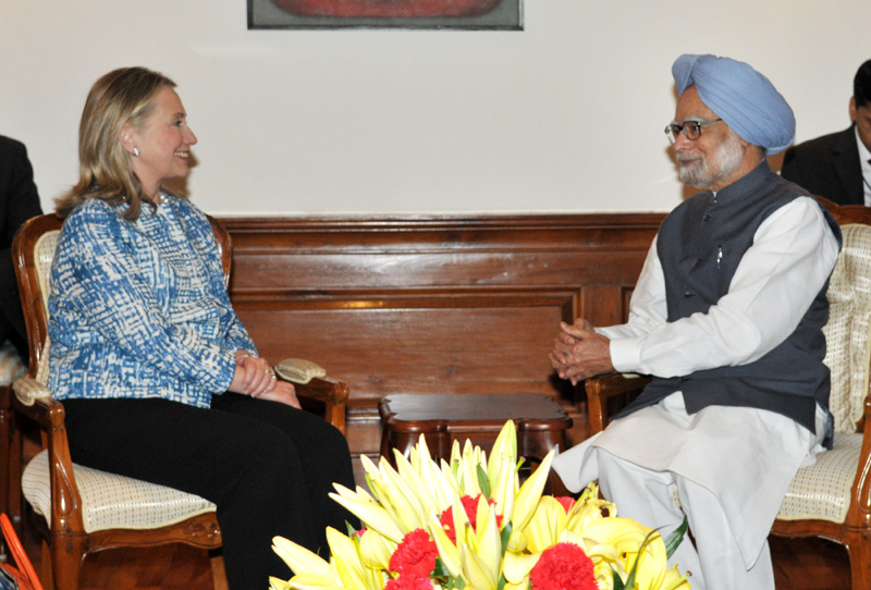 ਪ੍ਰਧਾਨਮੰਤਰੀ ਮਨਮੋਹਨ ਸਿੰਘ ਅਤੇ ਹਿਲਰੀ ਕਲਿੰਟਨ ਗੱਲਬਾਤ ਕਰਦੇ ਹੋਏ