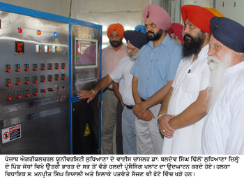 ਡਾ: ਢਿੱਲੋਂ ਨੇ ਜੋਧਾਂ ਪਿੰਡ ਦੇ ਹਿੰਮਤੀ ਅਤੇ ਉਤਸ਼ਾਹੀ ਨੌਜਵਾਨਾਂ ਦੀ ਸ਼ਲਾਘਾ ਕੀਤੀ ਜਿੰਨ੍ਹਾਂ ਨੇ ਵਿਦੇਸ਼ਾਂ ਵਿਚੋਂ ਪਰਤ ਕੇ ਆਪਣੀ ਜਨਮ ਭੂਮੀ ਤੇ ਪਰਤ ਕੇ ਪੰਜਾਬ ਐਗਰੀਕਲਚਰਲ ਯੂਨੀਵਰਸਿਟੀ ਦੀ ਮਦਦ ਨਾਲ ਉੱਤਰੀ ਭਾਰਤ ਦਾ ਸਭ ਤੋਂ ਵੱਡਾ ਹਲਦੀ ਦੀ ਪ੍ਰੋਸੈਸਿੰਗ ਪਲਾਂਟ ਸ਼ੁਰੂ ਕੀਤਾ ਹੈ। 50 ਹਜ਼ਾਰ ਕੁਇੰਟਲ ਸਾਲਾਨਾ ਹਲਦੀ ਪ੍ਰੋਸੈਸਿੰਗ ਸਮਰੱਥਾ ਵਾਲੇ ਇਸ ਪਲਾਂਟ ਦੇ ਲੱਗਣ ਨਾਲ ਮਾਲਵਾ ਖੇਤਰ ਦੇ ਕਿਸਾਨਾਂ ਨੂੰ ਵਧੇਰੇ ਲਾਭ ਮਿਲੇਗਾ ਅਤੇ ਰਵਾਇਤੀ ਕਣਕ-ਝੋਨਾ ਫ਼ਸਲ ਚੱਕਰ ਹੇਠੋਂ ਵੀ ਰਕਬਾ ਨਿਕਲ ਕੇ ਹਲਦੀ ਵਰਗੀਆਂ ਨਵੀਆਂ ਫ਼ਸਲਾਂ ਅਧੀਨ ਆਵੇਗਾ। ਡਾ: ਢਿੱਲੋਂ ਨੇ ਕਿਹਾ ਕਿ ਬਦੇਸ਼ੀ ਮੰਡੀਆਂ ਵਿੱਚ ਹਲਦੀ ਦੀ ਖਪਤ ਦੇ ਟਿਕਾਣੇ ਪਛਾਣ ਕੇ ਮੰਡੀਕਰਨ ਯੋਜਨਾ ਉਲੀਕਣ ਦੀ ਲੋੜ ਪਵੇਗੀ। ਇਵੇਂ ਹੀ ਵੱਡੇ ਵਪਾਰਕ ਘਰਾਣਿਆਂ ਨਾਲ ਤਾਲਮੇਲ ਕਰਕੇ ਵੀ ਇਸ ਹਲਦੀ ਦੀ ਖਪਤ ਸਹੀ ਮੁੱਲ ਤੇ ਕੀਤੀ ਜਾਣੀ ਜ਼ਰੂਰੀ ਹੈ। ਉਨ੍ਹਾਂ ਆਖਿਆ ਕਿ ਹਲਦੀ ਦੀ ਪੌਸ਼ਟਿਕਤਾ ਬਾਰੇ ਵੀ ਚੇਤਨਾ ਮੁਹਿੰਮ ਯੂਨੀਵਰਸਿਟੀ ਵੱਲੋਂ ਚਲਾਈ ਜਾਵੇਗੀ। ਹਲਕਾ ਦਾਖਾ ਦੇ ਵਿਧਾਇਕ ਅਤੇ ਜ਼ਿਲ੍ਹਾ ਪ੍ਰੀਸ਼ਦ ਲੁਧਿਆਣਾ ਦੇ ਚੇਅਰਮੈਨ ਸ: ਮਨਪ੍ਰੀਤ ਸਿੰਘ ਅਯਾਲੀ ਅਤੇ ਇਲਾਕੇ ਦੇ ਉੱਘੇ ਵਿਅਕਤੀਆਂ ਸ: ਕੰਵਲਜੀਤ ਸਿੰਘ ਮੱਲ੍ਹਾ ਪ੍ਰਧਾਨ ਜ਼ਿਲ੍ਹਾ ਯੂਥ ਅਕਾਲੀ ਦਲ, ਸ: ਜਗਦੇਵ ਸਿੰਘ ਗਰੇਵਾਲ ਸਰਪੰਚ ਜੋਧਾਂ ਡਾ: ਜਰਨੈਲ ਸਿੰਘ ਨਾਰੰਗਵਾਲ, ਸ: ਅਵਤਾਰ ਸਿੰਘ ਉੱਭੀ, ਮੈਨੇਜਿੰਗ ਡਾਇਰੈਕਟਰ ਸ: ਅਵਤਾਰ ਸਿੰਘ ਚੇਅਰਮੈਨ, ਸ: ਜੁਝਾਰ ਸਿੰਘ ਵਾਈਸ ਚੇਅਰਮੈਨ ਅਤੇ ਡਾਇਰੈਕਟਰ ਵਿਕਰਮਜੀਤ ਸਿੰਘ ਨੇ ਵਾਈਸ ਚਾਂਸਲਰ ਡਾ: ਬਲਦੇਵ ਸਿੰਘ ਢਿੱਲੋਂ ਨੂੰ ਸਾਂਝੇ ਤੌਰ ਤੇ ਸਨਮਾਨਿਤ ਕੀਤਾ। ਇਹ ਪਲਾਂਟ ਪੰਜਾਬ ਐਗਰੀਕਲਚਰਲ ਯੂਨੀਵਰਸਿਟੀ ਲੁਧਿਆਣਾ ਦੇ ਪ੍ਰੋਸੈਸਿੰਗ ਅਤੇ ਭੋਜਨ ਇੰਜੀਨੀਅਰਿੰਗ ਵਿਭਾਗ ਦੀ ਤਕਨੀਕੀ ਦੇਖਰੇਖ ਹੇਠ ਲਗਾਇਆ ਗਿਆ ਹੈ।