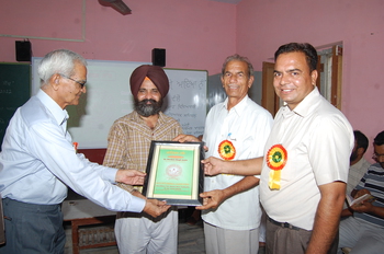 ਡਾ. ਦਰਸ਼ਨ ਸਿੰਘ ਆਸ਼ਟ ਦਾ ਸਨਮਾਨ ਕਰਦੇ ਹੋਏ ਸਕੂਲ ਦੇ ਮੁੱਖ ਪ੍ਰਬੰਧਕ ਸ੍ਰੀ ਰਾਜਕੁਮਾਰ ਅਤੇ ਹੋਰ ਸ਼ਖ਼ਸੀਅਤਾਂ