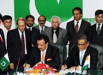 ਇਸਲਾਮਾਬਾਦ- ਭਾਰਤ ਅਤੇ ਪਾਕਿਸਤਾਨ ਦਰਮਿਆਨ ਵੀਜ਼ਾ ਨਿਯਮਾਂ ਨੂੰ ਸੌਖਿਆਂ ਕਰਨ ਦਾ ਇਤਿਹਾਸਿਕ ਸਮਝੌਤਾ ਹੋ ਗਿਆ ਹੈ।ਭਾਰਤ ਦੇ ਵਿਦੇਸ਼ ਮੰਤਰੀ ਕ੍ਰਿਸ਼ਨਾ ਇਸ ਸਮੇਂ ਪਾਕਿਸਤਾਨ ਦੇ ਦੌਰੇ ਤੇ ਹਨ।ਪਾਕਿਸਤਾਨ ਦੇ ਸੁਰੱਖਿਆ ਮੰਤਰੀ ਰਹਿਮਾਨ ਮਲਿਕ ਅਤੇ ਕ੍ਰਿਸ਼ਨਾ ਵਿੱਚਕਾਰ ਵੀਜ਼ੇ ਸਬੰਧੀ ਸਮਝੌਤੇ ਤੇ ਦਸਤਖਤ ਹੋ ਗਏ ਹਨ।