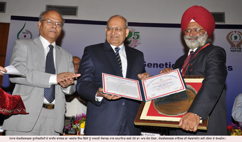 ਲੁਧਿਆਣਾ:- ਪੰਜਾਬ ਐਗਰੀਕਲਚਰਲ ਯੂਨੀਵਰਸਿਟੀ, ਲੁਧਿਆਣਾ ਦੇ ਵਾਈਸ ਚਾਂਸਲਰ ਡਾ: ਬਲਦੇਵ ਸਿੰਘ ਢਿੱਲੋਂ ਨੂੰ ਪਲਾਂਟ ਜੈਨੇਟਿਕ  ਸੋਮਿਆਂ ਦੇ ਸਹੀ ਪ੍ਰਬੰਧ ਵਿੱਚ ਉਨ੍ਹਾਂ ਵੱਲੋਂ ਪਾਏ ਉੱਘੇ ਯੋਗਦਾਨ ਕਰਕੇ ਡਾ: ਹਰਭਜਨ ਸਿੰਘ ਯਾਦਗਾਰੀ ਐਵਾਰਡ ਨਾਲ ਸਨਮਾਨਿਤ ਕੀਤਾ ਗਿਆ। ਇਹ ਐਵਾਰਡ ਉਨ੍ਹਾਂ ਨੂੰ ਡਾ: ਆਰ ਐਸ ਪੈਰੋਡਾ, ਐਗਰੀਕਲਚਰਲ ਸਾਇੰਸਜ਼ ਦੀ ਐਡਵਾਂਸਮੈਂਟ ਲਈ ਟਰੱਸਟ ਦੇ ਚੇਅਰਮੈਨ ਅਤੇ ਸਾਬਕਾ ਡਾਇਰੈਕਟਰ ਜਨਰਲ, ਭਾਰਤੀ ਖੇਤੀ ਖੋਜ ਪ੍ਰੀਸ਼ਦ ਨੇ ਪਲਾਂਟ ਜੈਨੇਟਿਕ ਸੋਮਿਆਂ ਦੀ ਭਾਰਤੀ ਸੰਸਥਾ ਵੱਲੋਂ ਨਵੀਂ ਦਿੱਲੀ ਵਿਖੇ ਦਿੱਤਾ ਗਿਆ। ਡਾ: ਢਿੱਲੋਂ ਨੇ ਬਤੌਰ ਨਿਰਦੇਸ਼ਕ, ਪਲਾਂਟ ਜੈਨੇਟਿਕ ਸੋਮਿਆਂ ਦੇ ਨੈਸ਼ਨਲ ਬਿਓਰੋ ਵਿਖੇ ਆਪਣੇ ਸੇਵਾ ਕਾਲ ਮੌਕੇ ਭਾਰਤੀ ਪੌਦ ਜੈਨੇਟਿਕ ਸੋਮਿਆਂ ਦੇ ਪ੍ਰਬੰਧ ਪ੍ਰੋਗਰਾਮ ਵਿੱਚ ਅਹਿਮ ਯੋਗਦਾਨ ਪਾਇਆ। ਉਨ੍ਹਾਂ ਨੇ ਪੌਦਿਆਂ ਨੂੰ ਚੁਣ ਕੇ ਖੋਜ ਕਰਨ ਉਪਰੰਤ 2005-07 ਦੌਰਾਨ ਨੈਸ਼ਨਲ ਜੀਨ ਬੈਂਕ ਜੋ ਕਿ ਵਿਸ਼ਵ ਦਾ ਤੀਜਾ ਜੀਨ ਬੈਂਕ ਹੈ ਵਿੱਚ ਜਰਮ ਪਲਾਜ਼ਮ ਨੂੰ 0.196 ਤੋਂ ਵਧਾ ਕੇ 0.303 ਮਿਲੀਅਨ ਕਰਨ ਦਾ ਵਿਸ਼ੇਸ਼ ਕਾਰਜ ਕੀਤਾ। ਉਨ੍ਹਾਂ ਦੇ ਕਾਰਜਕਾਲ ਦੌਰਾਨ ਜਰਮ ਪਲਾਜ਼ਮ ਇਕੱਤਰ ਕਰਨ ਅਤੇ ਪੌਦਿਆਂ ਦੀ ਖੋਜ ਕਰਨ ਦੇ ਵੱਡੇ ਕਾਰਜ ਅਰੰਭੇ ਗਏ। ਪੌਦ ਜੈਨੇਟਿਕ ਸੋਮਿਆਂ ਦਾ ਡੈਟਾਬੇਸਿਸ ਤਿਆਰ ਕਰਨ ਵਿੱਚ ਡਾ: ਢਿੱਲੋਂ ਨੇ ਅਹਿਮ ਭੂਮਿਕਾ ਨਿਭਾਈ। ਪਲਾਂਟ ਜੈਨੇਟਿਕ ਸੋਮਿਆਂ ਨਾਲ ਸਬੰਧਿਤ ਰਾਸ਼ਟਰੀ ਅਤੇ ਅੰਤਰਰਾਸ਼ਟਰੀ  ਨਿਯਮਾਂ ਨੂੰ ਧਿਆਨ ਵਿੱਚ ਰੱਖਦਿਆਂ ਹੋਇਆਂ ਉਨ੍ਹਾਂ ਨੇ ਜਰਮ ਪਲਾਜ਼ਮ ਦਾ ਅਦਾਨ-ਪ੍ਰਦਾਨ ਕਰਨ ਵਿੱਚ ਦਿਸ਼ਾ ਨਿਰਦੇਸ਼ ਸੁਝਾਏ।