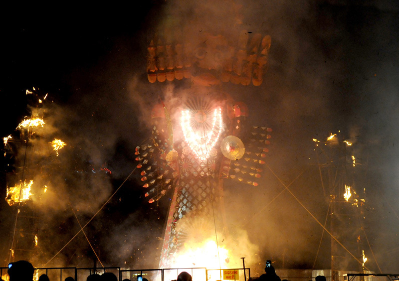 ਰਾਮਲੀਲਾ ਮੈਦਾਨ ‘ਚ ਰਾਵਣ ਦਾ ਪੁੱਤਲਾ ਸਾੜਦੇ ਹੋਏ