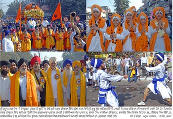 ਨਗਰ ਕੀਰਤਨ ਵਿੱਚ ਨਗਾਰਾ ਗੱਡੀ,ਗੁਰੁ ਮਹਾਰਾਜ ਦੀਆਂ ਲਾਡਲੀਆਂ ਫੌਜਾਂ ਘੋੜ ਸਵਾਰ, ਬੈਂਡ ਵਾਜੇ ਅਤੇ ਖਾਲਸਾ ਸਕੂਲਾਂ ਦੇ ਬੱਚੇ ਬੈਂਡ ਵਾਜਿਆਂ ਸਮੇਤ ਨਗਰ ਕੀਤਰਨ ਦੀ ਸੋਭਾ ਵਧਾ ਰਹੇ ਸਨ।ਸ਼ਸਤਰ ਵਿਦਿਆ ਦਲ ਦੇ ਗਤਕਈ ਅਖਾੜੈ ਸ਼ਸਤਰਾਂ ਰਾਹੀਂ ਆਪਣੀ ਕਲਾਂ ਦੇ ਜੌਹਰ ਵਿਖਾ ਰਹੇ ਸਨ।