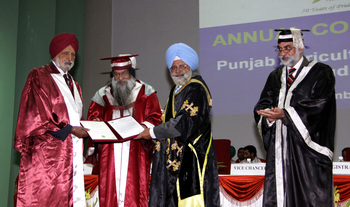 ਯੂਨੀਵਰਸਿਟੀ ਦੇ ਵਾਈਸ ਚਾਂਸਲਰ ਡਾ: ਬਲਦੇਵ ਸਿੰਘ ਢਿੱਲੋਂ ਨੇ 392 ਵਿਦਿਆਰਥੀਆਂ ਨੂੰ ਪੀ ਐਚ ਡੀ, ਐਮ ਐਸ ਸੀ, ਐੱਮ ਟੈੱਕ, ਐਮ ਬੀ ਏ, ਐਮ ਬੀ ਏ (ਐਗਰੀ. ਬਿਜਨਸ), ਐਮ ਸੀ ਏ ਅਤੇ ਮਾਸਟਰ ਆਫ ਜਰਨਲਿਜ਼ਮ ਦੀਆਂ ਡਿਗਰੀਆਂ ਪ੍ਰਦਾਨ ਕੀਤੀਆਂ। ਇਸ ਮੌਕੇ ਮੁੱਖ ਮਹਿਮਾਨ ਡਾ: ਅਭੀਜੀਤ ਸੇਨ ਨੇ ਸਾਲ 2011-12 ਲਈ ਸ: ਕਰਤਾਰ ਸਿੰਘ ਕਾਹਲੋਂ ਗੋਲਡ ਮੈਡਲ ਨਾਲ ਸਰਵੋਤਮ ਵਿਦਿਆਰਥੀ (ਐਮ ਐਸ ਸੀ ਖੇਤੀਬਾੜੀ) ਵਜੋਂ ਨਵਪ੍ਰੀਤ ਕੁਮਾਰ, ਐਮ ਬੀ ਏ ਦੀ ਸਭ ਤੋਂ ਵੱਧ ਅੰਕ ਹਾਸਿਲ ਕਰਨ ਵਾਲੀ ਵਿਦਿਆਰਥਣ ਕਣਿਕਾ ਨੂੰ ਲਾਲਾ ਸ਼੍ਰੀ ਰਾਮ ਜੀ ਮੈਡਲ, ਐਮ ਐਸ ਸੀ ਫ਼ਲ ਵਿਗਿਆਨ ਵਿੱਚ ਸਰਵੋਤਮ ਅੰਕ ਲੈਣ ਵਾਲੀ ਮਧੂ ਕੁਮਾਰੀ ਨੂੰ ਸਰਦਾਰ ਬਹਾਦਰ ਲਾਲ ਸਿੰਘ ਮੈਡਲ, ਐਮ ਐਸ ਸੀ ਫ਼ਸਲ ਵਿਗਿਆਨ ਵਿੱਚ ਸਰਵੋਤਮ ਅੰਕ ਲੈਣ ਲਈ ਮਨਪ੍ਰੀਤ ਜੈਦਕਾ ਨੂੰ ਡਾ: ਗੁਰਬਖਸ਼ ਸਿੰਘ ਗਿੱਲ ਮੈਡਲ, ਐਮ ਐਸ ਸੀ ਭੋਜਨ ਟੈਕਨਾਲੋਜੀ ਵਿੱਚ ਵਧੇਰੇ ਅੰਕ ਲੈਣ ਵਾਲੀ ਵਿਦਿਆਰਥਣ ਸਵਾਤੀ ਕਪੂਰ ਨੂੰ ਡਾ: ਕੇ ਕਿਰਪਾਲ ਸਿੰਘ ਗੋਲਡ ਮੈਡਲ, ਪਲਾਂਟ ਬ੍ਰੀਡਿੰਗ ਐਮ ਐਸ ਸੀ ਵਿੱਚ ਸਰਵੋਤਮ ਅੰਕ ਲੈਣ ਲਈ ਰੁਪਿੰਦਰਪਾਲ ਸਿੰਘ ਨੂੰ ਸ: ਇਕਬਾਲ ਸਿੰਘ ਢਿੱਲੋਂ ਮੈਡਲ, ਕੀਟ ਵਿਗਿਆਨ ਐਮ ਐਸ ਸੀ ਵਿੱਚ ਸਰਵੋਤਮ ਅੰਕ ਲੈਣ ਵਾਲੀ ਰਮਨਪ੍ਰੀਤ ਕੌਰ ਨੂੰ ਡਾ: ਸਰਦਾਰ ਸਿੰਘ ਮੈਡਲ, ਭੂਮੀ ਵਿਗਿਆਨੀ ਐਮ ਐਸ ਸੀ ਵਿੱਚ ਸਰਵੋਤਮ ਅੰਕ ਲੈਣ ਵਾਲੇ ਜਿਬਨ ਚੰਦਰ ਨਾਥ ਨੂੰ ਡਾ: ਨਰਿੰਦਰ ਸਿੰਘ ਰੰਧਾਵਾ ਮੈਡਲ, ਸਬਜ਼ੀਆਂ ਨਾਲ ਸਬੰਧਿਤ ਵਿਸ਼ੇ ਤੇ ਐਮ ਐਸ ਸੀ ਕਰਨ ਵਾਲੇ ਜਸਕੰਵਲ ਸਿੰਘ ਨੂੰ ਡਾ: ਬੀ ਆਰ ਸ਼ਰਮਾ ਮੈਡਲ, ਬਾਇਓ ਕਮਿਸਨਰੀ ਐਮ ਐਸ ਸੀ ਵਿੱਚ ਸਰਵੋਤਮ ਅੰਕ ਲੈਣ ਵਾਲੀ ਹਿਨਾ ਮਲਹੋਤਰਾ ਨੂੰ ਡਾ: ਜੀ ਐਸ ਸਿੱਧੂ ਮੈਡਲ, ਮਾਈਕਰੋਬਾਇਲੋਜੀ ਐਮ ਐਸ ਸੀ ਵਿਚ ਸਰਵੋਤਮ ਅੰਕ ਲੈਣ ਵਾਲੀ ਕੁਮਾਰੀ ਪੂਜਾ ਨੂੰ ਸ਼੍ਰੀ ਪੂਰਨ ਅਨੰਦ ਅਧਲੱਖਾ ਮੈਡਲ, ਐਮ ਐਸ ਸੀ ਕੀਟ ਵਿਗਿਆਨ ਵਿੱਚ ਸਰਵੋਤਮ ਅੰਕ ਲੈਣ ਵਾਲੇ ਅਭੀਜੀਤ ਕਾਰ ਨੂੰ ਡਾ: ਗੁਰਮੇਲ ਸਿੰਘ ਧਾਲੀਵਾਲ ਮੈਡਲ, ਬਾਇਓ ਟੈਕਨਾਲੋਜੀ ਵਿੱਚ ਸਰਵੋਤਮ ਅੰਕ ਲੈਣ ਵਾਲੀ ਵਿਦਿਆਰਥਣ ਬਲਜਿੰਦਰ ਕੌਰ ਨੂੰ ਡਾ:ਮਨਜੀਤ ਸਿੰਘ ਕੰਗ ਮੈਡਲ, ਸਰਵਪੱਖੀ ਸਰਵੋਤਮ ਗਰੈਜੂਏਟ ਐਲਾਨੇ ਜਾਣ ਲਈ ਜਸਕੀਰਤ ਕੌਰ ਵਿਰਕ ਨੂੰ ਡਾ: ਪੀ ਐਨ ਥਾਪਰ ਗੋਲਡ ਮੈਡਲ-2012 ਅਤੇ ਵਧੀਆ ਲੇਖ ਲਿਖਣ ਲਈ ਕੁਮਾਰੀ ਨਿਸ਼ੀ ਨੂੰ ਡਾ: ਐਮ ਐਸ ਰੰਧਾਵਾ ਮੈਡਲ ਨਾਲ ਸਨਮਾਨਿਤ ਕੀਤਾ ਗਿਆ।