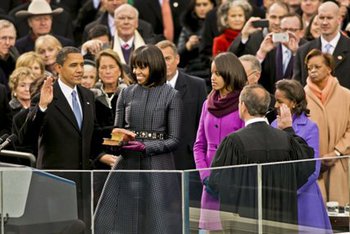 ਮੁੱਖ ਜੱਜ ਜਾਨ ਰਾਬਰਟ ਨੇ 51 ਸਾਲਾ ਓਬਾਮਾ ਨੂੰ ਰਾਸ਼ਟਰਪਤੀ ਦੇ ਅਹੁਦੇ ਦੀ ਸਹੁੰ ਚੁਕਾਈ।ਓਬਾਮਾ ਨੇ ਬਾਈਬਲ ਐ ਹੱਥ ਰੱਖ ਕੇ ਸਹੁੰ ਚੁਕੀ। ਮਿਸ਼ਲ ਨੇ ਆਪਣੇ ਪਤੀ ਓਬਾਮਾ ਨੂੰ ਦੁਬਾਰਾ ਰਾਸ਼ਟਰਪਤੀ ਚੁਣੇ ਜਾਣ ਤੇ ਵਧਾਈ ਦਿੱਤੀ। ਦੋ ਦਿਨ ਵਿੱਚ ਦੋ ਵਾਰ ਰਾਸ਼ਟਰਪਤੀ ਦੇ ਅਹੁਦੇ ਦੀ ਸਹੁੰ ਚੁੱਕੀ ਗਈ।ਇੱਕ ਵਾਰ ਐਤਵਾਰ ਨੂ ਨਿਜੀ ਤੌਰ ਤੇ ਅਤੇ ਦੂਸਰੀ ਵਾਰ ਅਮਰੀਕੀ ਲੋਕਾਂ ਦੀ ਮੌਜੂਦਗੀ ਵਿੱਚ ਸੋਮਵਾਰ ਨੂੰ ਇਹ ਰਸਮ ਅਦਾ ਕੀਤੀ ਗਈ।ਇਸ ਸਮਾਗਮ ਦੌਰਾਨ ਪ੍ਰੀਵਾਰਿਕ ਮੈਂਬਰਾਂ ਤੋਂ ਇਲਾਵਾ ਕਾਂਗਰਸੀ ਮੈਂਬਰ, ਫੈਮਿਲੀ ਫਰੈਂਡਜ਼ ਅਤੇ ਅਮਰੀਕੀ ਲੋਕ ਹਾਜਿਰ ਸਨ।