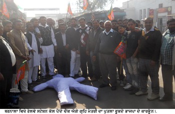 ਭਾਜਪਾ ਕਾਰਕੁੰਨਾ ਨੇ ਗ੍ਰਹਿ ਮੰਤਰੀ ਦਾ ਪੁਤਲਾ ਫੂਕਿਆ