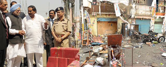 ਡਾ. ਮਨਮੋਹਨ ਸਿੰਘ ਧਮਾਕੇ ਵਾਲੀ ਥਾਂ ਦਾ ਜਾਇਜ਼ਾ ਲੈਂਦੇ ਹੋਏ
