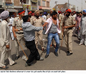 ਘਟਨਾ ਸਥਾਨ ਤੋਂ ਪ੍ਰਾਪਤ ਜਾਣਕਾਰੀ ਮੁਤਾਬਿਕ ਪੰਜਾਬ ਸਰਕਾਰ ਵੱਲੋਂ 31 ਮਾਰਚ ਤੋਂ ਨੌਕਰੀਓਂ ਫਾਰਗ ਕੀਤੇ ਜਾਣ ਸਦਕਾ ਬੇਰੁਜਗਾਰੀ ਦਾ ਸੰਤਾਪ ਹੰਢਾ ਰਹੇ ਜੋਨ ਮਾਲਵਾ ਦੇ ਸਪੈਸ਼ਲ ਟਰੇਨਰ ਅਧਿਆਪਕਾਂ/ਅਧਿਆਪਕਾਵਾਂ ਨੇ ਸਪੈਸ਼ਲ ਟਰੇਨਰ ਯੂਨੀਅਨ ਦੀ ਅਗਵਾਈ ਹੇਠ ਅੱਜ ਬਰਨਾਲਾ ਵਿਖੇ ਰੋਸ ਮਾਰਚ ਕਰਨ ਉਪਰੰਤ ਬਰਨਾਲਾ ਦੇ ਮੁੱਖ ਬੱਸ ਸਟੈਂਡ ’ਤੇ ਜਾਮ ਲਗਾ ਦਿੱਤਾ। ਜਿਉਂ ਹੀ ਅਧਿਆਪਕ ਆਧਿਆਪਕਾਵਾਂ ਜਾਮ ਲਗਾਇਆ ਤਾਂ ਬੱਸ ਸਟੈਂਡ ’ਚ ਨਿੱਜੀ ਬੱਸ ਟਰਾਂਸਪੋਰਟਰਾਂ ਦੇ ਕਰਿੰਦਿਆਂ ਵੱਲੋਂ ਧਰਨਾਕਾਰੀਆਂ ਦੀ ਅੰਨ੍ਹੇਵਾਹ ਕੁੱਟਮਾਰ ਸੁੂਰੂ ਕਰ ਦਿੱਤੀ ਅਤੇ ਬੈਠੇ ਅਧਿਆਪਕਾਵਾਂ ’ਤੇ ਬੱਸ ਡਰਾਇਵਰਾਂ ਤੇ ਕੰਡਕਟਰਾਂ ਵੱਲੋਂ ਜਾਮ ਨੂੰ ਤੋੜਕੇ ਧੱਕੇ ਨਾਲ ਪੁਲਿਸ ਮੁਲਾਜ਼ਮਾਂ ਦੇ ਰੋਕੇ ਜਾਣ ਦੇ ਬਾਵਜੂਦ ਬੱਸਾਂ ¦ਘਾਉਣ ਦੀ ਕੋਸ਼ਿਸ਼ ਵੀ ਕੀਤੀ ਗਈ। ਜਿਸ ਉਪਰੰਤ ਜਾਮਕਾਰੀਆਂ ਤੇ ਬੱਸਾਂ ਵਾਲਿਆਂ ’ਚ ਝੜਪ ਸੁਰੂ ਹੋ ਗਈ। ਨੌਬਤ ਹੱਥੋ ਪਾਈ ’ਤੇ ਪੁੱਜ ਗਈ। ਪੁਲਿਸ ਨੇ ਸਥਿਤੀ ਕੰਟਰੋਲ ਕਰਨ ਦੀ ਬਜਾਇ ਘਟਨਾ ਸਥਾਨ ’ਤੇ ਪੁੱਜੇ ਡੀਐਸਪੀ ਹਰਮੀਕ ਸਿੰਘ ਦਿਉਲ ਨੇ ਵੀ ਆਪਣੇ ਮੁਲਾਜਮਾਂ ਸਮੇਤ ਨਿੱਜੀ ਟਰਾਂਸਪੋਰਟਰਾਂ ਦੇ ਕਰਿੰਦਿਆਂ ਦਾ ਸਾਥ ਦਿੰਦਿਆਂ ਟਰੇਨਰ ਅਧਿਆਪਕਾਂ ’ਤੇ ਮਾਰਕੁਟਾਈ ਤੇ ਡਾਂਗ ਵਰ੍ਹਾਈ। ਇਥੋਂ ਤੱਕ ਕਿ ਪ੍ਰਾਇਵੇਟ ਟਰਾਂਸਪੋਰਟਰਾਂ ਦੇ ਕਰਿੰਦਿਆਂ ਨੇ ਪੁਲਿਸ ਵਾਲਿਆਂ ਦੀਆਂ ਹੀ ਲਾਠੀਆਂ ਫੜ-ਫੜ ਕੇ ਸਰ੍ਹੇਆਮ ਅਧਿਆਪਕਾਵਾਂ ਤੇ ਕੁਟਾਪਾ ਚਾੜਿਆ ਤੇ ਭੱਦੀ ਸ਼ਬਦਾਵਲੀ ਦਾ ਪਯੋਗ ਕੀਤਾ। ਪੀੜਤਾਂ ਗਰਭਵਤੀ ਮਲਕੀਤ ਕੌਰ ਪਟਿਆਲਾ, ਨਵਵਿਆਹੀਆਂ ਜਸਪ੍ਰੀਤ ਕੌਰ ਭਦੌੜ, ਗੁਰਜੀਤ ਕੌਰ ਅਜੀਤ ਗੜ੍ਹ ਤੋਂ ਇਲਾਵਾ ਰਮਨ ਕੋਰ ਬਠਿੰਡਾ, ਜਗਨਜੀਤ ਕੌਰ ਰਾਮਪੁਰਾ, ਰੇਸ਼ਮਾ ਰਾਣੀ ਫਾਜਿਲਕਾ, ਬੇਅੰਤ ਕੌਰ ਮੁਕਤਸਰ, ਦਵਿੰਦਰ ਕੌਰ ਮੁਹਾਲੀ ਅਤੇ ਮਾਲਵਾ ਜੋਨ ਪ੍ਰਧਾਨ ਜਗਦੀਪ ਸਿੰਘ ਬਰਨਾਲਾ, ਬਰਿੰਦਰ ਸ਼ਰਮਾ ਪਟਿਆਲਾ, ਨੌਜਵਾਨ ਭਾਰਤ ਸਭਾ ਪੰਜਾਬ ਦੇ ਨਵਕਿਰਨ ਪੱਤੀ ਆਦਿ ਵੀ ਸ਼ਾਮਲ ਸਨ। ਇਸ ਮੌਕੇ ਡੀਐਸਪੀ ਹਰਮੀਕ ਸਿੰਘ ਦਿਉਲ, ਐਸ ਐਚਓ ਸਿਟੀ ਸਤੀਸ਼ ਕੁਮਾਰ, ਸੀਆਈਏ ਇੰਚਾਰਜ਼ ਬਲਜੀਤ ਸਿੰਘ ਸਮੇਤ ਭਾਰੀ ਗਿਣਤੀ ’ਚ ਪੁਲਿਸ ਕਰਮਚਾਰੀ ਹਾਜਰ ਸੀ।