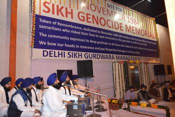 ਨਵੀਂ ਦਿੱਲੀ : ਨਵੰਬਰ 1984 ਨੂੰ ਦਿੱਲੀ ਵਿਖੇ ਕਤਲੇਆਮ ਦਾ ਸ਼ਿਕਾਰ ਹੋਏ ਹਜਾਰਾਂ ਸਿੱਖਾਂ ਦੀ ਯਾਦ ਵਿਚ ਦਿੱਲੀ ਸਿੱਖ ਗੁਰਦੁਆਰਾ ਪ੍ਰਬੰਧਕ ਕਮੇਟੀ ਵਲੋਂ ਨਵੰਬਰ 1984 ਸਿੱਖ ਕਤਲੇਆਮ ਯਾਦਗਾਰ ਦੇ ਨੀਂਹ ਪੱਥਰ ਵਾਲੇ ਸਥਾਨ ਤੇ ਕੀਰਤਨ ਦਰਬਾਰ ਕਰਵਾਇਆ ਗਿਆ, ਜਿਸ ਵਿਚ ਪੰਥ ਦੇ ਪ੍ਰਸਿੱਧ ਕੀਰਤਨੀਏ ਭਾਈ ਹਰਜਿੰਦਰ ਸਿੰਘ ਜੀ ਸ੍ਰੀਨਗਰ ਵਾਲੇ ਅਤੇ ਭਾਈ ਮਨਪ੍ਰੀਤ ਸਿੰਘ ਜੀ ਕਾਨਪੂਰੀ ਨੇ ਮਨੋਹਰ ਗੁਰਬਾਨੀ ਕੀਰਤਨ ਰਾਹੀਂ ਸ਼ਹੀਦਾਂ ਨੂੰ ਸ਼੍ਰਧਾਂਜਲੀ ਦੇਣ ਦੇ ਨਾਲ ਹੀ ਕੀਤੀਆਂ ਪੰਥਕ ਵਿਚਾਰਾਂ ਦੌਰਾਨ ਕੌਮ ਨੂੰ ਇਕਮੁੱਠ ਹੋ ਕੇ ਹੱਲਾ ਮਾਰ ਕੇ ਦੋਸ਼ੀਆਂ ਨੂੰ ਸਜਾ ਦਿਵਾਉਣ ਦੀ ਵੀ ਬੇਨਤੀ ਕੀਤੀ। ਇਸ ਮੌਕੇ ਦਿੱਲੀ ਕਮੇਟੀ ਦੇ ਪ੍ਰਧਾਨ ਮਨਜੀਤ ਸਿੰਘ ਜੀ.ਕੇ. ਨੇ ਯਾਦਗਾਰ ਬਨਾਉਣ ਦੀ ਵਚਨਬੱਧਤਾ ਦੋਹਰਾਉਂਦੇ ਹੋਏ ਦਾਅਵਾ ਕੀਤਾ ਕਿ ਵਿਰੋਧੀ ਧਿਰ ਯਾਦਗਾਰ ਦੇ ਕਾਰਜ ਨੂੰ ਰੋਕਣ ਵਾਸਤੇ ਬੇਸ਼ਕ ਤਰਲੋਮੱਛੀ ਹੋਣ, ਪਰ ਦਿੱਲੀ ਦੀ ਸੰਗਤਾਂ ਦੀ ਭਾਵਨਾਵਾਂ ਨੂੰ ਮੁੱਖ ਰਖਦੇ ਹੋਏ ਤੇ ਆਉਣ ਵਾਲੀ ਪੀੜੀ ਨੂੰ ਇਸ ਕਤਲੇਆਮ ਬਾਰੇ ਜਾਨੂੰ ਕਰਾਉਣ ਲਈ ਪਾਰਲੀਆਮੈਂਟ ਦੇ ਸਾਹਮਣੇ ਗੁਰੂ ਕਿਰਪਾ ਸਦਕਾ ਯਾਦਗਾਰ ਅਸੀ ਜਰੂਰ ਬਨਾਵਾਂਗੇ।