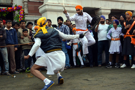 ਨਗਰ ਕੀਰਤਨ ਦੌਰਾਨ ਗਤਕੇ ਦੇ ਜੌਹਰ ਵਿਖਾਉਂਦੇ ਹੋਏ ਖਾਲਸਾ