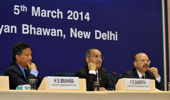 ਨਵੀਂ ਦਿੱਲੀ- ਚੋਣ ਕਮਿਸ਼ਨ ਨੇ ਅੱਜ 16ਵੀਂ ਲੋਕਸਭਾ ਦੀਆਂ ਚੋਣਾਂ ਦਾ ਐਲਾਨ ਕਰ ਦਿੱਤਾ ਹੈ। ਚੋਣਾਂ ਦੀ ਸ਼ੁਰੂਆਤ 7 ਅਪਰੈਲ ਨੂੰ ਹੋਵੇਗੀ ਅਤ 12 ਮਈ ਨੂੰ ਆਖਰੀ ਪੜਾਅ ਦੀ ਚੋਣ ਹੋਵੇਗੀ। ਪੂਰੇ ਦੇਸ਼ ਵਿੱਚ ਕੁਲ 9 ਪੜਾਵਾਂ ਵਿੱਚ ਚੋਣਾਂ ਹੋਣਗੀਆਂ। ਚੋਣਾਂ ਦਾ ਐਲਾਨ ਹੁੰਦਿਆਂ ਹੀ ਆਚਾਰ ਸਹਿੰਤਾ ਲਾਗੂ ਹੋ ਗਈ ਹੈ।