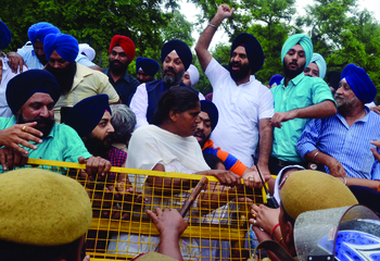 ਪ੍ਰਦਰਸ਼ਨਕਾਰੀਆਂ ਨੇ ਹਰਿਆਣਾ ਦੇ ਮੁੱਖ ਮੰਤਰੀ ਦੇ ਖਿਲਾਫ ਜ਼ੋਰਦਾਰ ਨਾਰੇਬਾਜ਼ੀ ਕਰਦੇ ਹੋਏ ਕਾਂਗਰਸ ਪਾਰਟੀ ਤੇ ਸਿੱਖਾਂ ਨੂੰ ਤੋੜਨ ਅਤੇ ਉਨ੍ਹਾਂ ਦੇ ਧਾਰਮਿਕ ਮਸਲਿਆਂ ਵਿਚ ਦਖਲਅੰਦਾਜ਼ੀ ਕਰਨ ਦਾ ਦੋਸ਼ ਲਗਾੳਣ ਵਾਲੀ ਤਖਤੀਆਂ ਹੱਥ ‘ਚ ਫੜਕੇ ਸਿੱਖਾਂ ਨਾਲ ਨਾ ਟਕਰਾਉਣ ਦੀ ਕਾਂਗਰਸ ਮੁੱਖੀ ਨੂੰ ਚੇਤਾਵਨੀ ਦਿੱਤੀ।