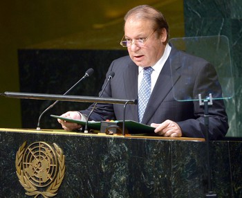 ਨਿਊਯਾਰਕ – ਪਾਕਿਸਤਾਨ ਦੇ ਪ੍ਰਧਾਨਮੰਤਰੀ ਨਵਾਜ਼ ਸ਼ਰੀਫ਼ ਨੇ ਸੰਯੁਕਤ ਰਾਸ਼ਟਰ ਮਹਾਂਸਭਾ ਵਿੱਚ ਆਪਣੇ ਭਾਸ਼ਣ ਦੌਰਾਨ ਇੱਕ ਵਾਰ ਫਿਰ ਕਸ਼ਮੀਰ ਰਾਗ ਅਲਾਪਿਆ ਹੈ। ਉਨ੍ਹਾਂ ਨੇ ਕਿਹਾ ਕਿ ਸੰਯੁਕਤ ਰਾਸ਼ਟਰ ਦੇ ਪ੍ਰਸਤਾਵ ਦੇ ਆਧਾਰ ਤੇ ਕਸ਼ਮੀਰ ਮੁੱਦੇ ਦਾ ਹਲ ਹੋਣਾ ਜਰੂਰੀ ਹੈ। ਪ੍ਰਧਾਨਮੰਤਰੀ ਸ਼ਰੀਫ਼ ਨੇ ਕਸ਼ਮੀਰ ਮੁੱਦੇ ਤੇ ਮੱਤਦਾਨ ਕਰਵਾਉਣ ਦੀ ਵੀ ਮੰਗ ਕੀਤੀ।