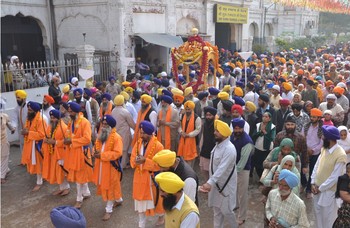 ਫੁੱਲਾਂ ਨਾਲ ਸਜੀ ਸੁਨਹਿਰੀ ਪਾਲਕੀ ‘ਚ ਧੰਨ-ਧੰਨ ਸ੍ਰੀ ਗੁਰੂ ਗ੍ਰੰਥ ਸਾਹਿਬ ਜੀ ਦੀ ਤਾਬਿਆ ਬੈਠੇ ਸਿੰਘ ਸਾਹਿਬ ਗਿਆਨੀ ਸੁਖਜਿੰਦਰ ਸਿੰਘ ਗ੍ਰੰਥੀ ਸੱਚਖੰਡ ਸ੍ਰੀ ਹਰਿਮੰਦਰ ਸਾਹਿਬ ਚੌਰ ਸਾਹਿਬ ਦੀ ਸੇਵਾ ਨਿਭਾਅ ਰਹੇ ਸਨ।ਨਗਰ ਕੀਰਤਨ ਵਿੱਚ ਸ਼ਹਿਰ ਦੀਆਂ ਸਭਾ-ਸੁਸਾਇਟੀਆਂ, ਨਿਹੰਗ ਸਿੰਘ ਜਥੇਬੰਦੀਆਂ, ਟਕਸਾਲਾਂ, ਗੱਤਕਾ ਪਾਰਟੀਆਂ, ਸਕੂਲੀ ਬੈਂਡ, ਵੱਖ-ਵੱਖ ਸਕੂਲਾਂ/ਕਾਲਜਾਂ ਦੇ ਬੱਚੇ, ਬੈਂਡ ਪਾਰਟੀਆਂ ਤੋਂ ਇਲਾਵਾ ਵੱਡੀ ਗਿਣਤੀ ‘ਚ ਸਤਿਨਾਮ ਵਾਹਿਗੁਰੂ ਦਾ ਜਾਪ ਕਰਦੀਆਂ ਪੈਦਲ ਸਿੱਖ ਸੰਗਤਾਂ ਨੇ ਸ਼ਮੂਲੀਅਤ ਕੀਤੀ।