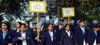 ਨਵੀਂ ਦਿੱਲੀ :- ਬੀਤੇ ਦਿਨੀ ਪਾਕਿਸਤਾਨ ਦੇ ਪੇਸ਼ਾਵਰ ਸ਼ਹਿਰ ਦੇ ਆਰਮੀ ਪਬਲਿਕ ਸਕੂਲ ‘ਚ ਦਹਿਸ਼ਤਗਰਦਾ ਵੱਲੋਂ ਮਾਰੇ ਗਏ 132 ਨਿਰਦੋਸ਼ ਬੱਚਿਆਂ ਦੀ ਯਾਦ ‘ਚ ਦਿੱਲੀ ਸਿੱਖ ਗੁਰਦੁਆਰਾ ਪ੍ਰਬੰਧਕ ਕਮੇਟੀ ਅਤੇ ਸ਼੍ਰੋਮਣੀ ਅਕਾਲੀ ਦਲ ਵੱਲੋਂ ਸਾਂਝੇ ਤੌਰ ਤੇ ਮਨੁੱਖੀ ਕੜੀ ਅੱਜ ਹਜਾਰਾਂ ਸਕੂਲੀ ਬੱਚਿਆਂ ਵੱਲੋਂ ਦਿੱਲੀ ਦੇ ਕਨਾਟ ਪਲੇਸ ਇਲਾਕੇ ਦੇ ਸੈਂਟਰਲ ਪਾਰਕ ਦੇ ਬਾਹਰ ਬਣਾਈ ਗਈ। ਇਸ ਮੌਕੇ ਬੱਚੇ ਇੰਗਲੀਸ਼ ਅਤੇ ਹਿੰਦੀ ਦੇ ਵੱਖ-ਵੱਖ ਸੰਦੇਸ਼ ਲਿਖੀਆਂ ਤਖਤੀਆਂ ਵੀ ਹੱਥ ‘ਚ ਫੜੇ ਹੋਏ ਸਨ। ਜਿਨ੍ਹਾਂ ਤੇ ਮੁੱਖ ਤੌਰ ਤੇ ਕੁਝ ਸਵਾਲ ਵੀ ਸਨ ਮਸਲਨ, ਕਿਹੜਾ ਧਰਮ ਇਸ ਬਰਬਰਤਾ ਨਾਲ ਮਾਰਕਾਟ ਦੀ ਇਜਾਜ਼ਤ ਦਿੰਦਾ ਹੈ? ਨਿਰਦੋਸ਼ ਬੱਚਿਆਂ ਨੂੰ ਮਾਰਨਾ ਮਨੁੱਖਤਾ ਦਾ ਕਤਲ, ਰਾਕਸ਼ਸ ਦੀ ਕੋਈ ਪਛਾਣ ਤੇ ਧਰਮ ਨਹੀਂ ਹੁੰਦਾ, ਸਾਰੇ ਮਨੁੱਖਤਾ ਲਈ ਕਾਲਾ ਦਿੰਨ ਅਤੇ ਛੋਟੇ ਤਾਬੂਤ ਪਰ ਭਾਰੀ ਬਥੇਰੇ।