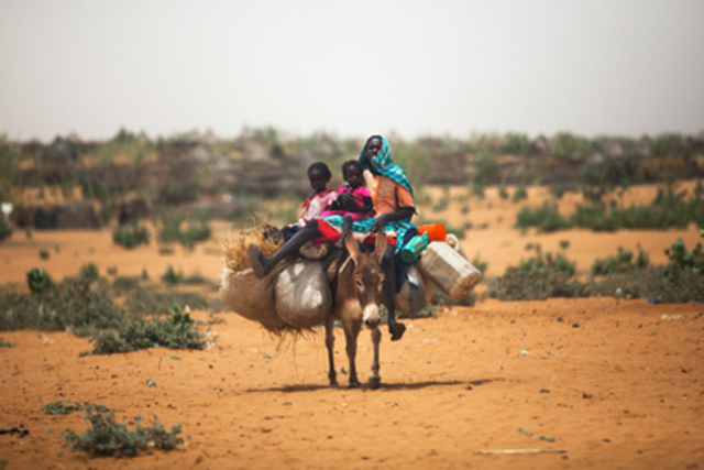 ਬੱਚਿਆਂ ਨੂੰ ਕੈਂਪ’ਚ ਲੈ ਕੇ ਜਾਂਦੀ ਹੋਈ ਸੂਡਾਨੀ ਔਰਤ