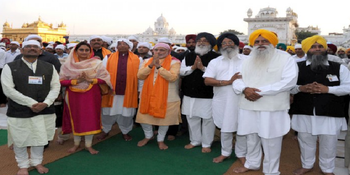 ਪਹਿਲਾ ਸੁਆਲ ਤਾਂ ਇਸ ਤਸਵੀਰ ਵਿਚ ਹੀ ਖੜਾ ਹੁੰਦਾ ਹੈ, ਜਿਸ ਵਿਚ ਇਹ ਨਹੀਂ ਪਤਾ ਲਗ ਰਿਹਾ ਕਿ ਮੋਦੀ, ਬਾਦਲ, ਦਿਲਮੇਘ, ਮਹਿਤਾ ਤੇ ਬਾਕੀ ਦੀ ਜੁੰਡਲੀ ਸਚਖੰਡ ਸ੍ਰੀ ਹਰਿਮੰਦਰ ਸਾਹਿਬ ਮਥਾ ਟੇਕਣ ਗਈ ਹੈ ਜਾਂ ਅਕਾਸ਼ ਵਿਚ ਉਡ ਰਹੀਆਂ ਗੁਡੀਆਂ, ਪਤੰਗਾਂ ਜਾਂ ਪੰਛੀਆਂ ਵਲ ਝਾਕ ਰਹੀ ਹੈ? ਇਨ੍ਹਾਂ ਦੇ ਹੱਥ ਸ੍ਰੀ ਹਰਿਮੰਦਰ ਸਾਹਿਬ ਵਲ ਜੁੜੇ ਹੋਏ ਹਨ ਜਾਂ ਅਕਾਸ਼ ਗੰਗਾ ਵਲ ਆਪਣੇ ਪਿਤ੍ਰਾਂ ਨੂੰ ਫਤਿਹ ਬੁਲਾ ਰਹੇ ਹਨ?