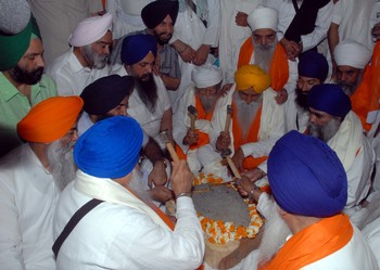 ਨਵੀਂ ਦਿੱਲੀ : ਸ੍ਰੀ ਗੁਰੁ ਹਰਿਕ੍ਰਿਸ਼ਨ ਸਾਹਿਬ ਜੀ ਦੀ ਪਵਿਤਰ ਛੋਹ ਪ੍ਰਾਪਤ ਸਥਾਨ  ਗੁਰਦੁਆਰਾ ਬੰਗਲਾ ਸਾਹਿਬ ਵਿਖੇ ਅੱਜ ਦਰਬਾਰ ਹਾਲ ਦੇ ਮੁੱਖ ਦਰਵਾਜ਼ੇ ਤੇ ਸੋਨੇ, ਸਰ੍ਹਾਂ ਦੇ ਵਿਸਤਾਰ ਅਤੇ ਸ੍ਰੀ ਅਖੰਡ ਪਾਠ ਸਾਹਿਬ ਦੇ ਕਮਰਿਆਂ ਦੀ ਕਾਰਸੇਵਾ ਦੀ ਆਰੰਭਤਾ ਅੱਜ ਅਰਦਾਸ ਉਪਰੰਤ ਜਥੇਦਾਰ ਸਾਹਿਬਾਨਾ ਵੱਲੋਂ ਸੰਤ ਮਹਾਪੁਰਸ਼ਾਂ ਅਤੇ ਟਕਸਾਲ ਮੁਖੀਆਂ ਦੀ ਮੌਜੂਦਗੀ ‘ਚ ਕੀਤੀ ਗਈ। ਗੁਰਦੁਆਰਾ ਸਾਹਿਬ ਦੇ ਹੈਡ ਗ੍ਰੰਥੀ ਗਿਆਨੀ ਰਣਜੀਤ ਸਿੰਘ ਵੱਲੋਂ ਅਰਦਾਸ ਕਰਨ ਉਪਰੰਤ ਬਾਬਾ ਬਚਨ ਸਿੰਘ ਨੇ ਫੁੱਲਾਂ ਦਾ ਹਾਰ ਦਮਦਮੀ ਟਕਸਾਲ ਦੇ ਮੁੱਖੀ ਬਾਬਾ ਹਰਨਾਮ ਸਿੰਘ ਖਾਲਸਾ ਨੂੰ ਭੇਂਟ ਕਰਕੇ ਮੁੱਖ ਦਰਵਾਜ਼ੇ ਤੇ ਸੋਨੇ ਦੀ ਸੇਵਾ ਜੈਕਾਰਿਆਂ ਦੀ ਗੂੰਜ ‘ਚ ਟਕਸਾਲ ਮੁੱਖੀ ਨੂੰ ਸੌਂਪੀ।ਸ੍ਰੀ ਅਕਾਲ ਤਖ਼ਤ ਸਾਹਿਬ ਦੇ ਜਥੇਦਾਰ ਗਿਆਨੀ ਗੁਰਬਚਨ ਸਿੰਘ, ਤਖ਼ਤ ਸ੍ਰੀ ਕੇਸਗੜ੍ਹ ਸਾਹਿਬ ਦੇ ਜਥੇਦਾਰ ਗਿਆਨੀ ਮਲ ਸਿੰਘ, ਤਖ਼ਤ ਸ੍ਰੀ ਪਟਨਾ ਸਾਹਿਬ ਦੇ ਜਥੇਦਾਰ ਗਿਆਨੀ ਇਕਬਾਲ ਸਿੰਘ, ਸਾਬਕਾ ਜਥੇਦਾਰ ਗਿਆਨੀ ਜੋਗਿੰਦਰ ਸਿੰਘ ਵੈਦਾਂਤੀ ਤੇ ਭਾਈ ਜਸਬੀਰ ਸਿੰਘ ਰੋਡੇ, ਸਾਬਕਾ ਰਾਜਸਭਾ ਮੈਂਬਰ ਤ੍ਰਿਲੋਚਨ ਸਿੰਘ, ਸ੍ਰੋਮਣੀ ਕਮੇਟੀ ਦੇ ਅੰਤ੍ਰਿੰਗ ਬੋਰਡ ਦੇ ਮੈਂਬਰ ਭਾਈ ਰਜਿੰਦਰ ਸਿੰਘ ਮਹਿਤਾ, ਨਾਨਕਸਰ ਸੰਪ੍ਰਦਾ ਦੇ ਬਾਬਾ ਹਰਜਿੰਦਰ ਸਿੰਘ ਜਿੰਦੂ ਅਤੇ ਸੰਤ ਸਮਾਜ ਦੇ ਜਰਨਲ ਸਕੱਤਰ ਬਾਬਾ ਸੁਖਦੇਵ ਸਿੰਘ ਨੇ ਵੀ ਸੰਗਤਾਂ ਨਾਲ ਇਸ ਮੌਕੇ ਆਪਣੇ ਵਿਚਾਰ ਸਾਂਝੇ ਕੀਤੇ।