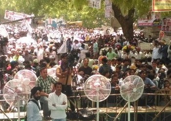 ਨਵੀਂ ਦਿੱਲੀ – ਆਪ ਵੱਲੋਂ ਜੰਤਰ-ਮੰਤਰ ਤੇ ਭੂਮੀ ਬਿਲ ਦੇ ਵਿਰੋਧ ਵਿੱਚ ਕੀਤੀ ਗਈ ਰੈਲੀ ਦੌਰਾਨ ਇੱਕ ਕਿਸਾਨ ਨੇ ਉਥੇ ਲਗੇ ਦਰੱਖਤ ਤੇ ਚੜ੍ਹ ਕੇ ਖੁਦਕੁਸ਼ੀ ਕਰਨ ਦੀ ਕੋਸਿ਼ਸ਼ ਕੀਤੀ। ਰਾਜਸਥਾਨ ਤੋਂ ਆਏ ਇਸ 42 ਸਲਾ ਗਜੇਂਦਰ ਸਿੰਘ ਨਾਂ ਦੇ ਕਿਸਾਨ ਦੀ ਹਸਪਤਾਲ ਵਿੱਚ ਇਲਾਜ ਦੌਰਾਨ ਮੌਤ ਹੋ ਗਈ।
